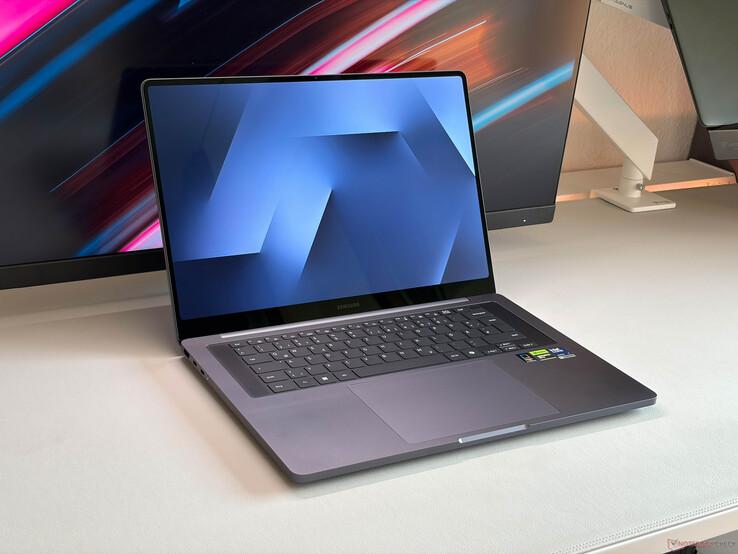 A Samsung também tentou copiar o teclado do MacBook Pro e se livrou do teclado numérico do modelo anterior. O deslocamento das teclas é bastante superficial e a experiência de digitação entre o Samsung e o Apple é, na verdade, muito semelhante e boa no geral, mas há teclados mais confortáveis no mercado, como o do Asus ProArt P16 ou o Lenovo Yoga Pro 9i 16. O touchpad háptico funciona muito bem e o usuário também pode usar a tela sensível ao toque capacitiva para fazer entradas.