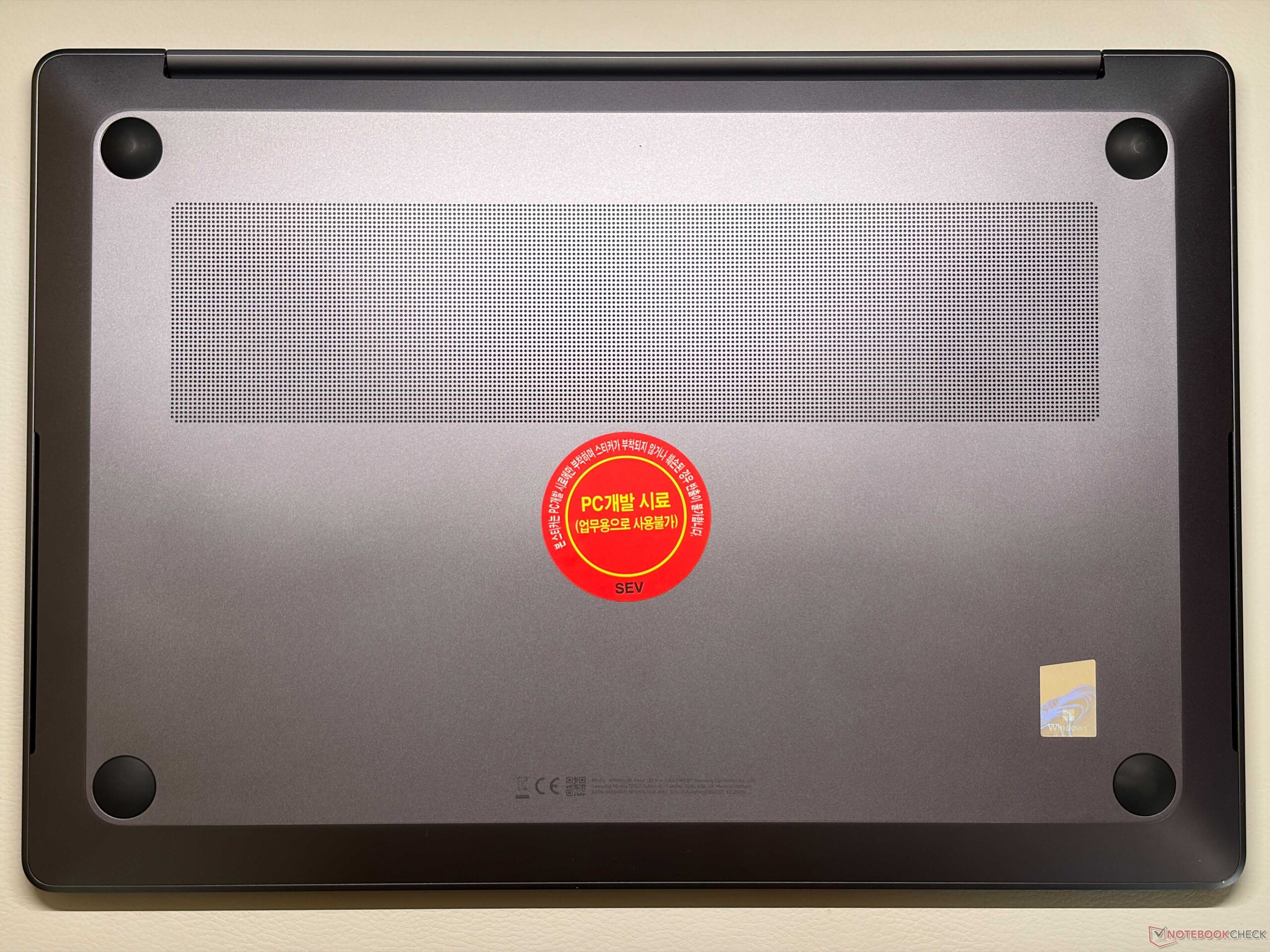 A Samsung abandonou o design anterior com a unidade de base em forma de cunha (que ainda está sendo usada para os outros modelos do Galaxy Book6) e o novo Galaxy Book6 Ultra se parece muito mais com um MacBook Pro 16. Temos certeza de que muitos usuários teriam dificuldade em diferenciar os dois modelos se os logotipos fossem removidos. A qualidade geral do Galaxy Book6 Ultra com o chassi de alumínio é excelente, tanto em termos de estabilidade quanto de qualidade de construção. No entanto, as impressões digitais são um problema e as superfícies não são fáceis de limpar. Não estamos satisfeitos com as dobradiças (ângulo máximo de abertura ~135 graus), pois a tela oscila um pouco. A moldura inferior também é muito grossa. É possível remover o painel inferior e acessar os slots de SSD, a bateria e as ventoinhas, mas a memória e o módulo Wi-Fi não podem ser substituídos.