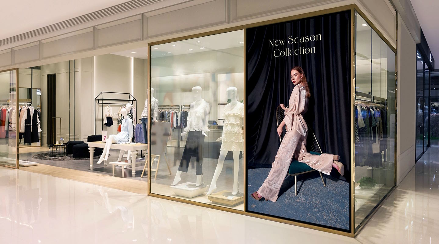 A tela tem uma diagonal de 115 polegadas e usa um painel VA com resolução de 3.840 x 2.160. Uma diagonal de tela tão grande resultaria em pixelização visível em resoluções mais baixas. Foi especificado um brilho típico de 1.000 cd/m², o que é particularmente relevante para a visualização em ambientes mais claros. O tempo de resposta é especificado como 6,5 milissegundos, embora isso não seja tão relevante para a publicidade.