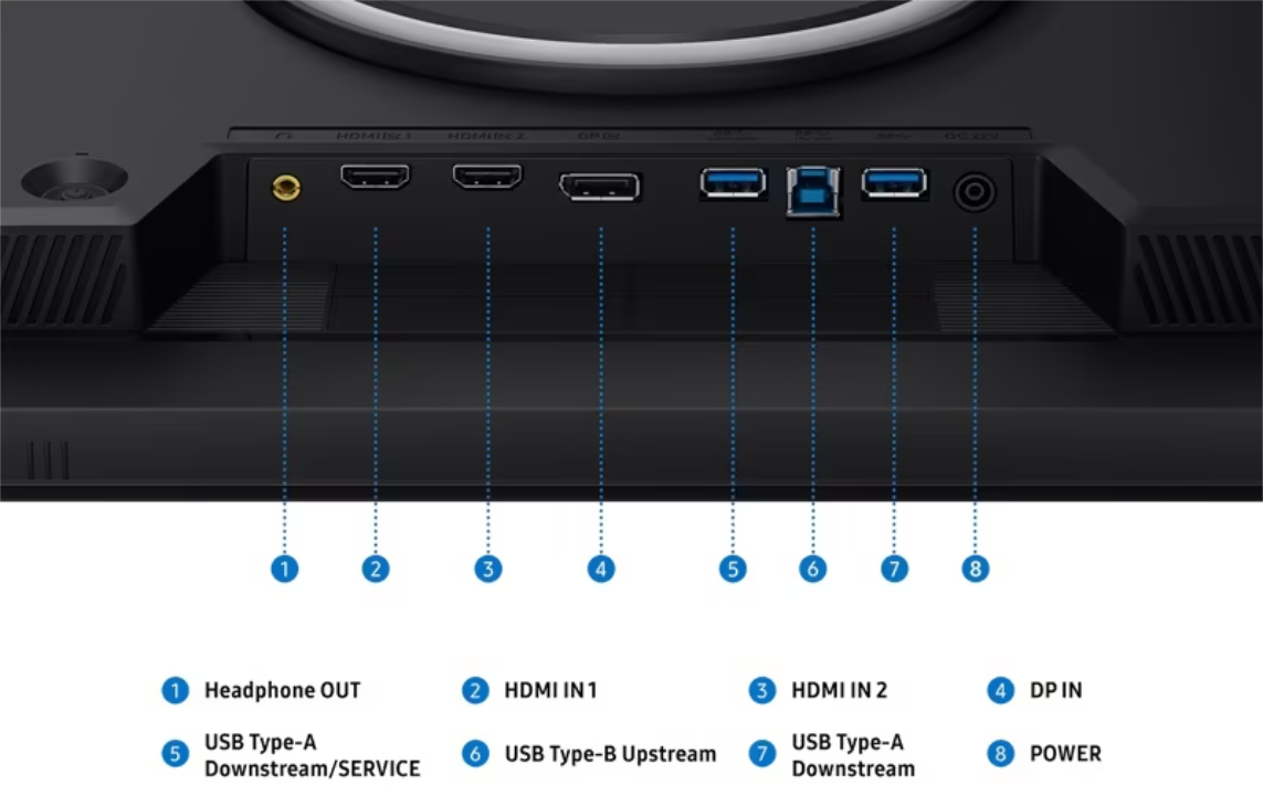 O novo monitor de 32 polegadas da Samsung também não tem uma porta USB Type-C. Como mostra a imagem acima, a Samsung inclui duas portas USB 3.2 Tipo A, bem como conexões HDMI 2.1 e DisplayPort 2.1 (UHBR20). A Samsung fixou o preço do Odyssey G8 (G80HS) em 1.499 euros (~1.755 dólares) na zona do euro. Atualmente, a Samsung espera começar a enviar as pré-encomendas por volta de 19 de junho.