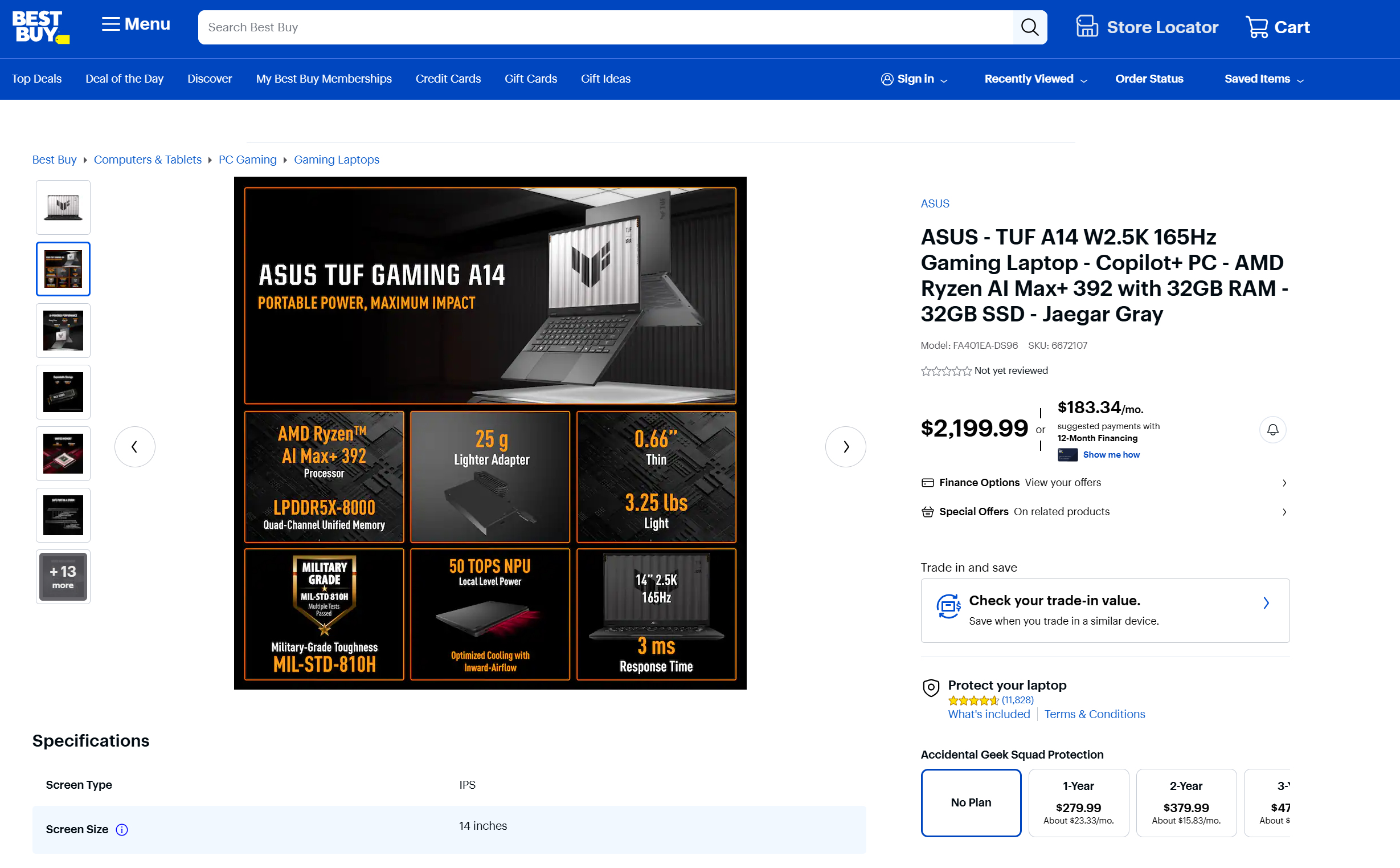 Em outros mercados, a Asus combina o Ryzen AI Max+ 392 com até 64 GB de RAM. Como resultado, é possível atribuir até 48 GB de VRAM e ainda manter 16 GB de RAM para a memória do sistema. Infelizmente, a Best Buy, a B&H Photo Video e a Provantage confirmaram as suspeitas anteriores de que os EUA receberão apenas uma variante de 32 GB de RAM. O TUF Gaming A14 FA401EA estará disponível nos EUA por US$ 2.199 com 1 TB de armazenamento, um segundo slot M.2 2280, uma tela de 165 Hz e uma bateria de 73 Wh.