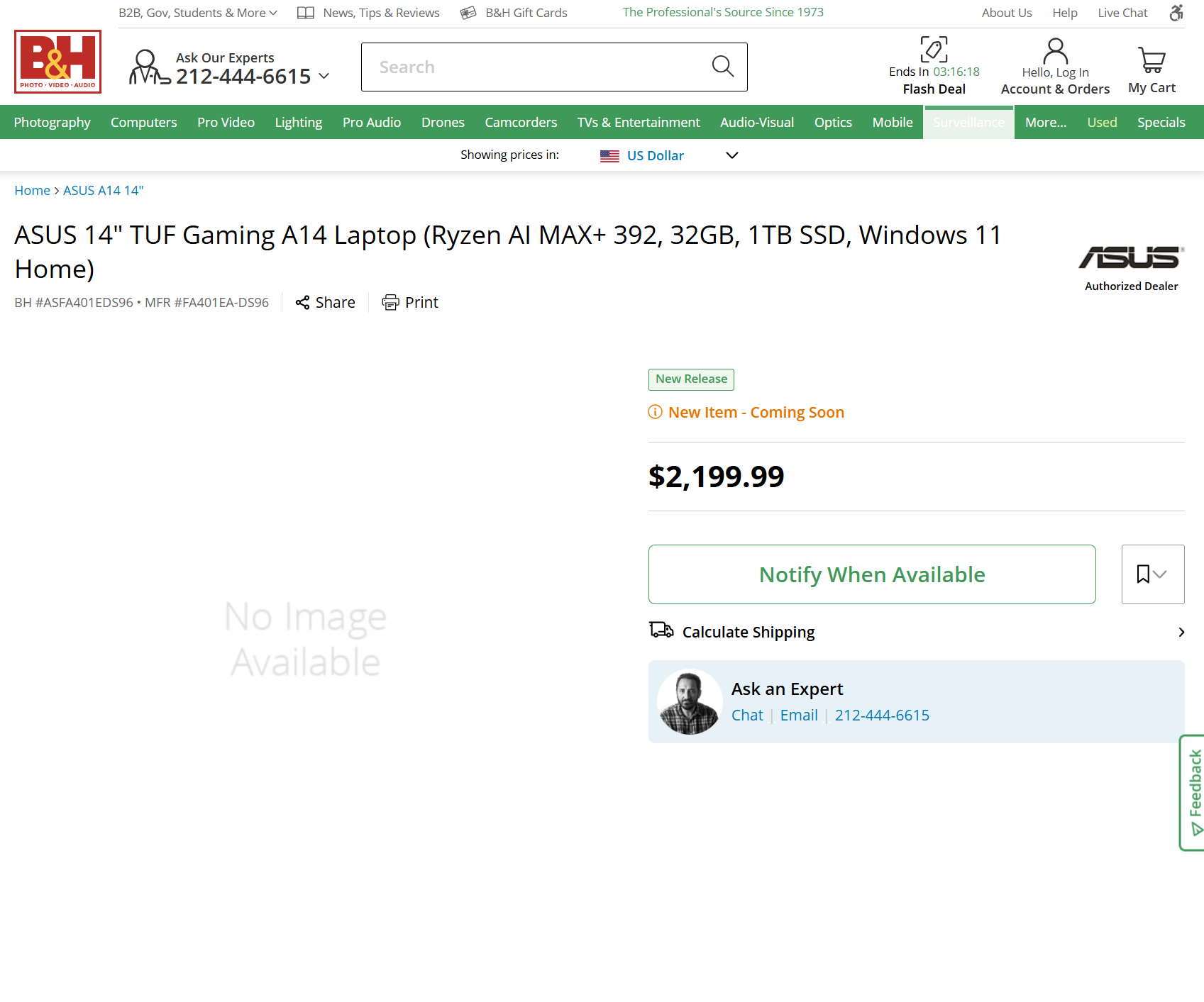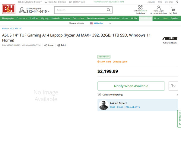 No entanto, parece que isso pode mudar em breve para a variante FA401EA baseada no Strix Halo da Asus. Anteriormente, a Asus havia listado o laptop em seu site nos EUA. Agora, Best Buy, B&H Photo Video e Provantage seguiram o exemplo. Considerado um "novo lançamento", a B&H Photo Video afirma que o FA401EA está "chegando em breve" e inclui um botão de inscrição para ser notificado quando as pré-encomendas forem abertas. Enquanto isso, a Provantage avisa que o FA401EA está fora de estoque ao tentar fazer um pedido.