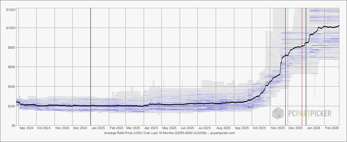 Como a oferta provavelmente continuará escassa, os preços continuarão fora do alcance de muitas pessoas. A RAM DDR5, por exemplo, teve seu preço disparado nos últimos meses, aumentando até cinco vezes no último ano. No entanto, houve uma ligeira queda desde janeiroo que parece indicar que há de fato um limite além do qual os consumidores simplesmente se recusarão a pagar.
