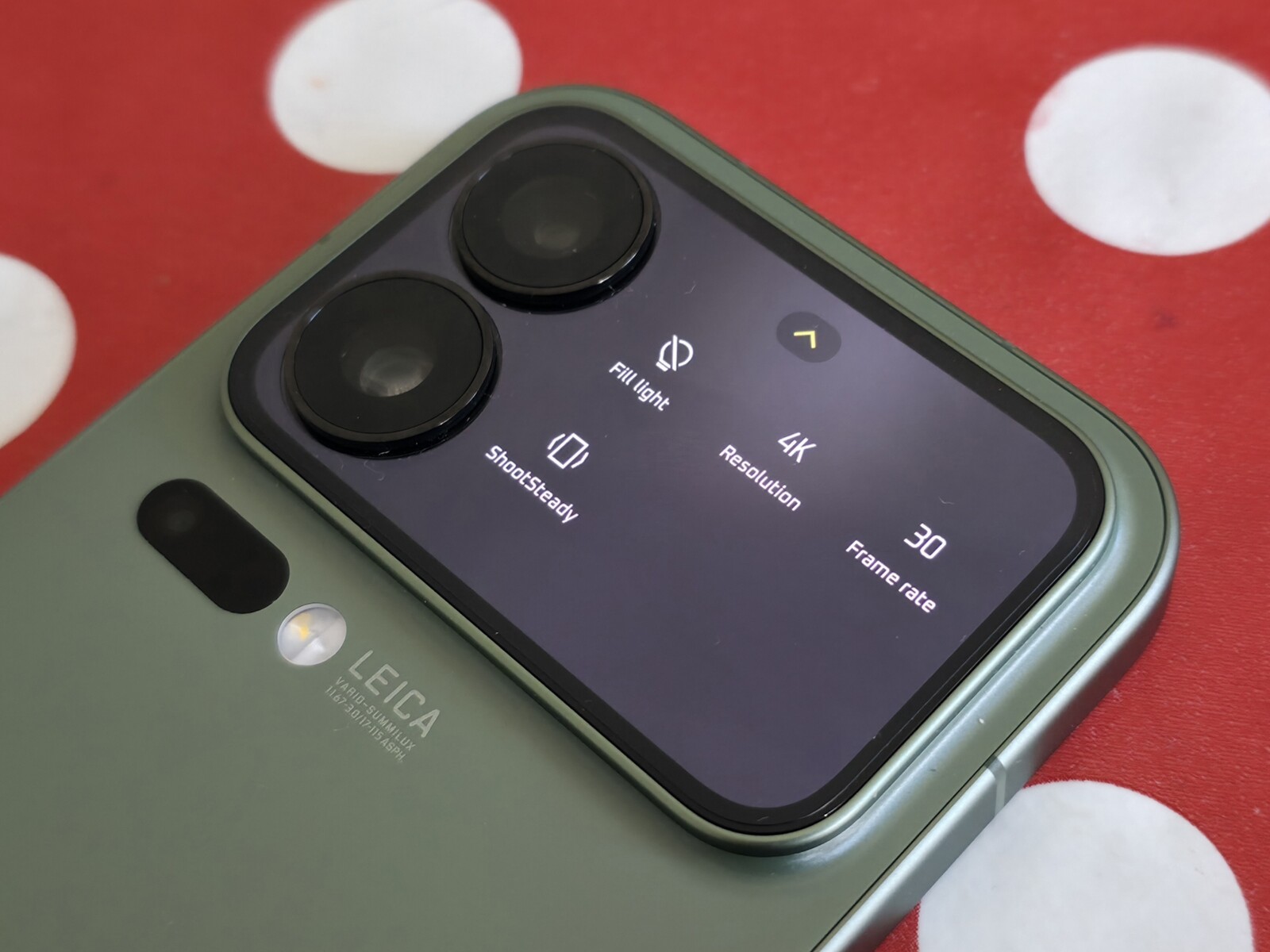 Além do painel AMOLED de 6,3 polegadas na parte frontal, a Xiaomi também integrou uma tela OLED de 2,7 polegadas na parte traseira, que também opera com uma taxa de atualização de 120 Hz e brilha a mais de 3.500 nits.
