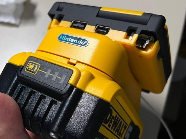 Um Game Boy Advance SP padrão(atualmente com preço em torno de US$ 180 na Amazon) funciona por cerca de 10 horas com sua bateria original. Para o usuário do Reddit u/Bangooh, isso não foi suficiente. Em vez de optar pela atualização usual de íons de lítio, ele optou por um caminho mais não convencional: uma bateria DeWalt com capacidade de 162.000 mWh - aproximadamente 45.000 mAh a 3,6 volts. Esse é o tipo de fonte de energia que o senhor normalmente encontraria em uma furadeira sem fio ou até mesmo em um cortador de grama.