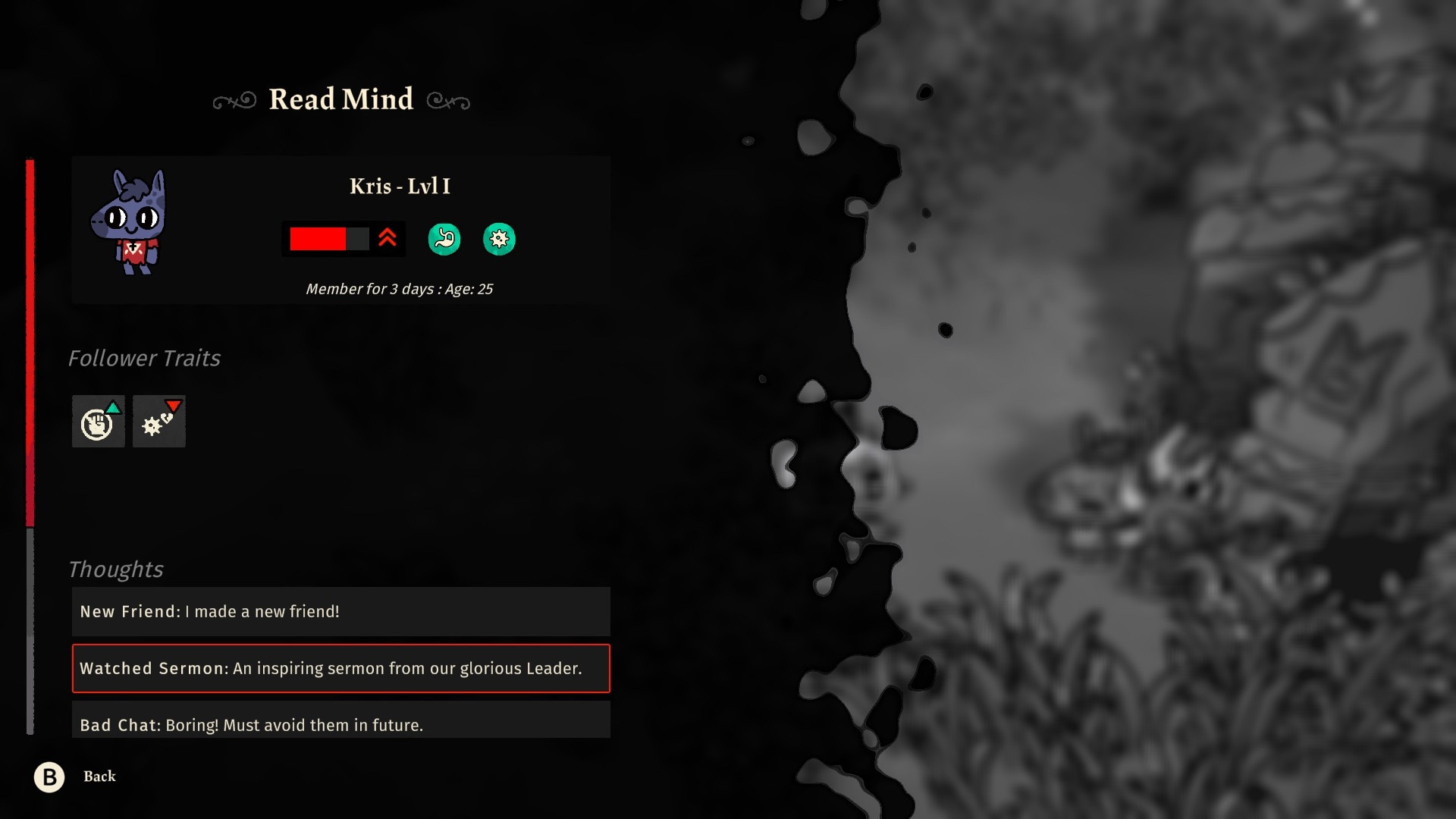 O senhor constrói estruturas, reúne recursos, prega sermões e realiza rituais sombrios para manter seus seguidores leais e sua fé forte. Ao mesmo tempo, o senhor se aventura em áreas geradas aleatoriamente, luta contra inimigos, derrota líderes de cultos rivais e absorve seus poderes. O objetivo é descobrir quatro regiões misteriosas, converter os descrentes e se tornar um Deus Cordeiro divino. No centro da experiência estão as cruzadas roguelike, com masmorras geradas processualmente, armas em constante mudança e upgrades temporários que tornam cada corrida única. Além disso, as atualizações permanentes proporcionam uma sensação constante de progressão.