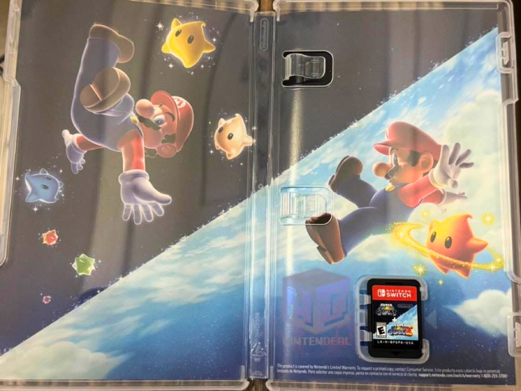 A ForeverPhysical compartilhou a arte no X e declarou: "Atenção! Esta é a aparência da arte interna da caixa e do cartucho de Super Mario Galaxy 1 e 2!", acompanhada de fotos que mostram o cartucho em um suporte transparente.