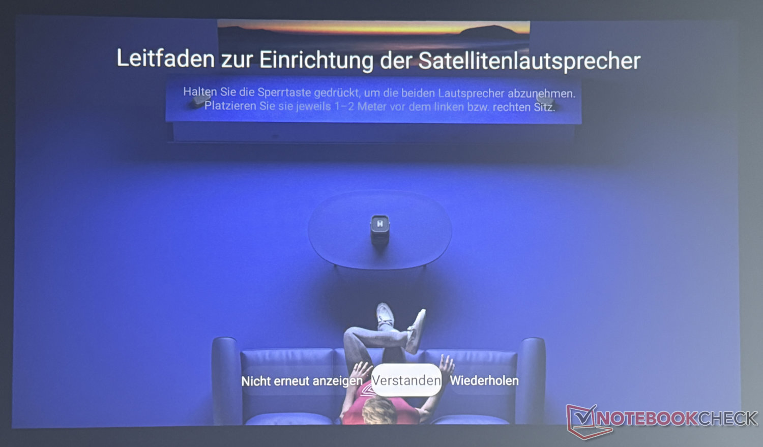 A configuração do Nebula P1 levou cerca de três quartos de hora em nosso teste. No entanto, isso se deveu em grande parte a uma atualização que ainda precisava ser instalada. Sem isso, é muito mais rápido. Conexão Wi-Fi, login na conta do Google e seleção de algumas configurações iniciais referentes a aplicativos e outros a serem instalados no smartphone ou com o controle remoto do projetor - então o projetor estará pronto para uso em menos de 30 minutos.