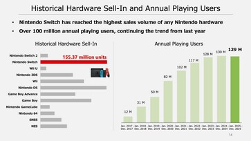Apesar de ser um console de última geração, o Switch original ainda conseguiu vender 3,25 milhões de unidades - uma queda de 66% em comparação com o mesmo período do ano passado. A Nintendo vendeu um total de 146,9 milhões de jogos, 37,93 milhões dos quais foram otimizados especificamente para o Switch 2.