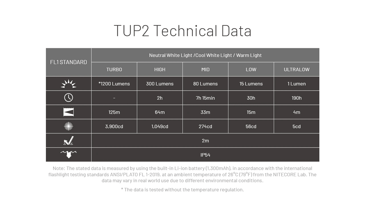 O lado positivo é que agora ele conta com o sistema MCT, que oferece várias temperaturas de cor por meio de dois LEDs quentes e dois LEDs frios, variando de 3.000, 4.500 a 6.500 Kelvin. Isso reduz o alcance de 180 metros para 120 metros. Por outro lado, de acordo com os valores reduzidos de candela, é provável que o senhor tenha um holofote mais forte. Por outro lado, o valor do lúmen aumentou apenas de 1.000 para 1.200. Isso significa que o TUP2 é apenas um sucessor direto limitado. Portanto, o fato de o senhor gostar ou não das melhorias depende muito de suas próprias necessidades em relação a uma lanterna.