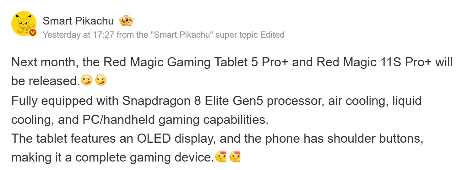 Agora, um novo relatório do Smart Pikachu, um notável vazador, sugere que o tablet para jogos está chegando. O lançamento está previsto para maio de 2026, e a RedMagic normalmente lança seus produtos globalmente logo após a estreia na China.
