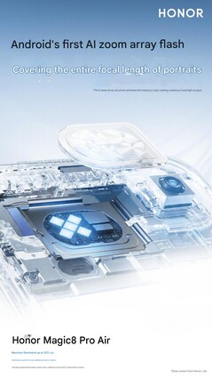 Vários novos teasers confirmaram ainda mais algumas especificações de câmera vazadas anteriormente, como o sensor de 50 MP para a câmera principal, que é bem grande, com 1/1,3 polegada e abertura de f/1,6. O mesmo se aplica à câmera telefoto com periscópio de 3,2x, que o site Honor afirma ser a mais fina do setor e possui um sensor de 64 MP de 1/2 polegada e abertura de f/2,6. Também está sendo anunciado um flash com zoom AI, projetado para cobrir todas as distâncias focais de retrato e atingir até 200 lux ou 50 lux a uma distância de 2 metros ou 6,6 pés.