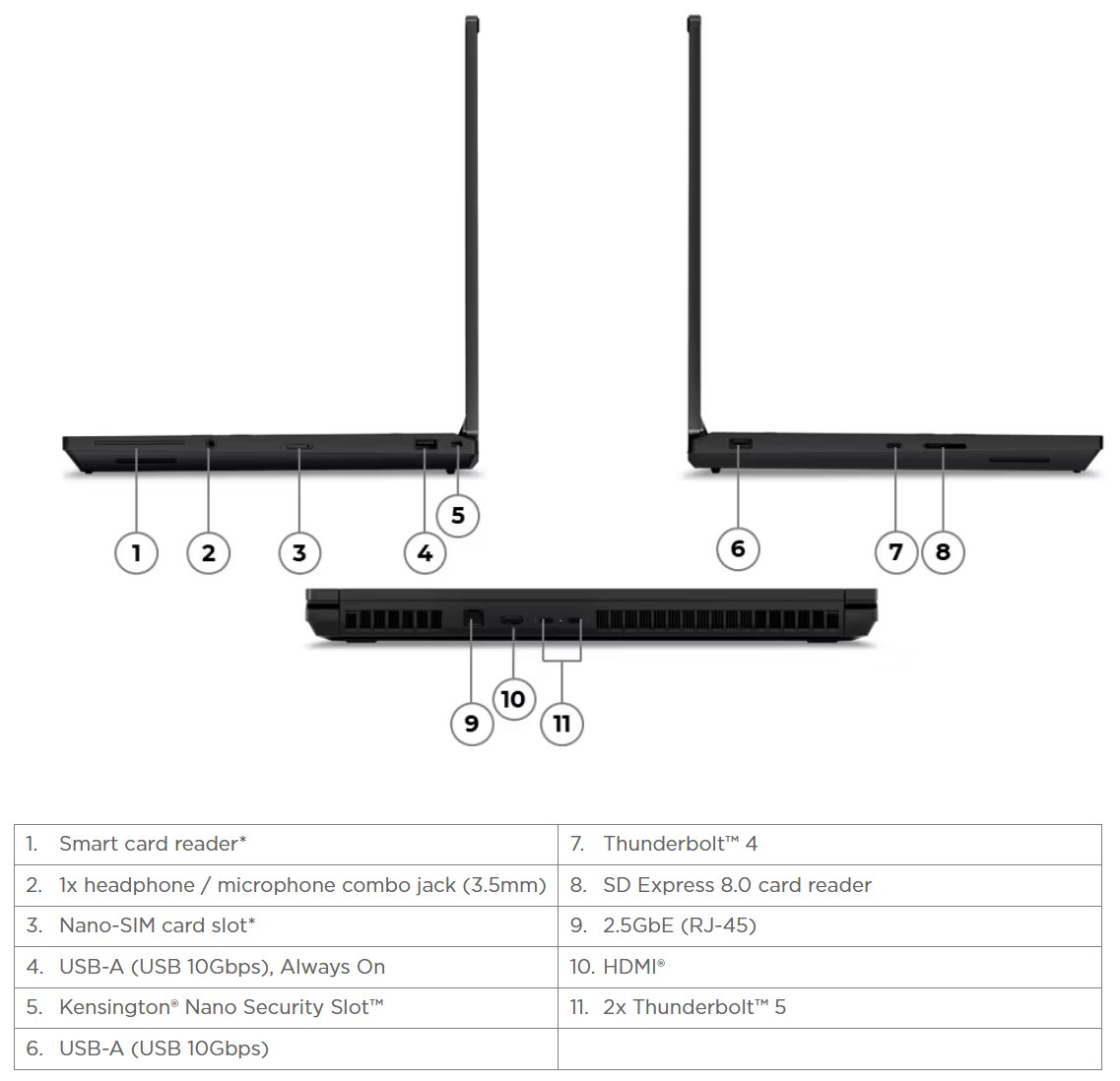 Da mesma forma, o ThinkPad T16g Gen 3 vem com processadores Intel Core Ultra 200HX até o Core Ultra 9 285HX. Da mesma forma, o ThinkPad T16g Gen 3 pode ser configurado com até 128 GB de RAM DDR5-5600 divididos em quatro slots SO-DIMM e 12 TB de armazenamento em três slots M.2 2280, sendo que um suporta SSDs PCIe 5.0. Além disso, a Lenovo equipa o ThinkPad T16g Gen 3 com uma bateria de 99,9 Wh e carregamento USB Type-C de 180 W.