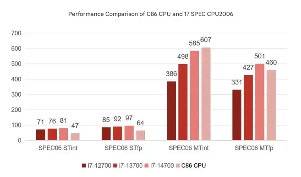 Agora, a Thunderobot se voltou para o Hygon C86, um processador x86 fabricado na China que também é conhecido como Black Warrior Hunting Blade Pro. Construído em torno de 16 núcleos com 32 threads, mas com um TDP desconhecido, o Hygon C86 está situado entre o Core i7-13700 e Core i7-14700K da Intel em termos de desempenho de vários núcleos. No entanto, com uma velocidade de clock de pico de 2,8 GHz, o Hygon C86 atinge o desempenho de núcleo único do Core i7-12700 com uma exibição bastante lamentável de 1.073 e 8.811 pontos nos benchmarks de núcleo único e de vários núcleos do Geekbench 6.