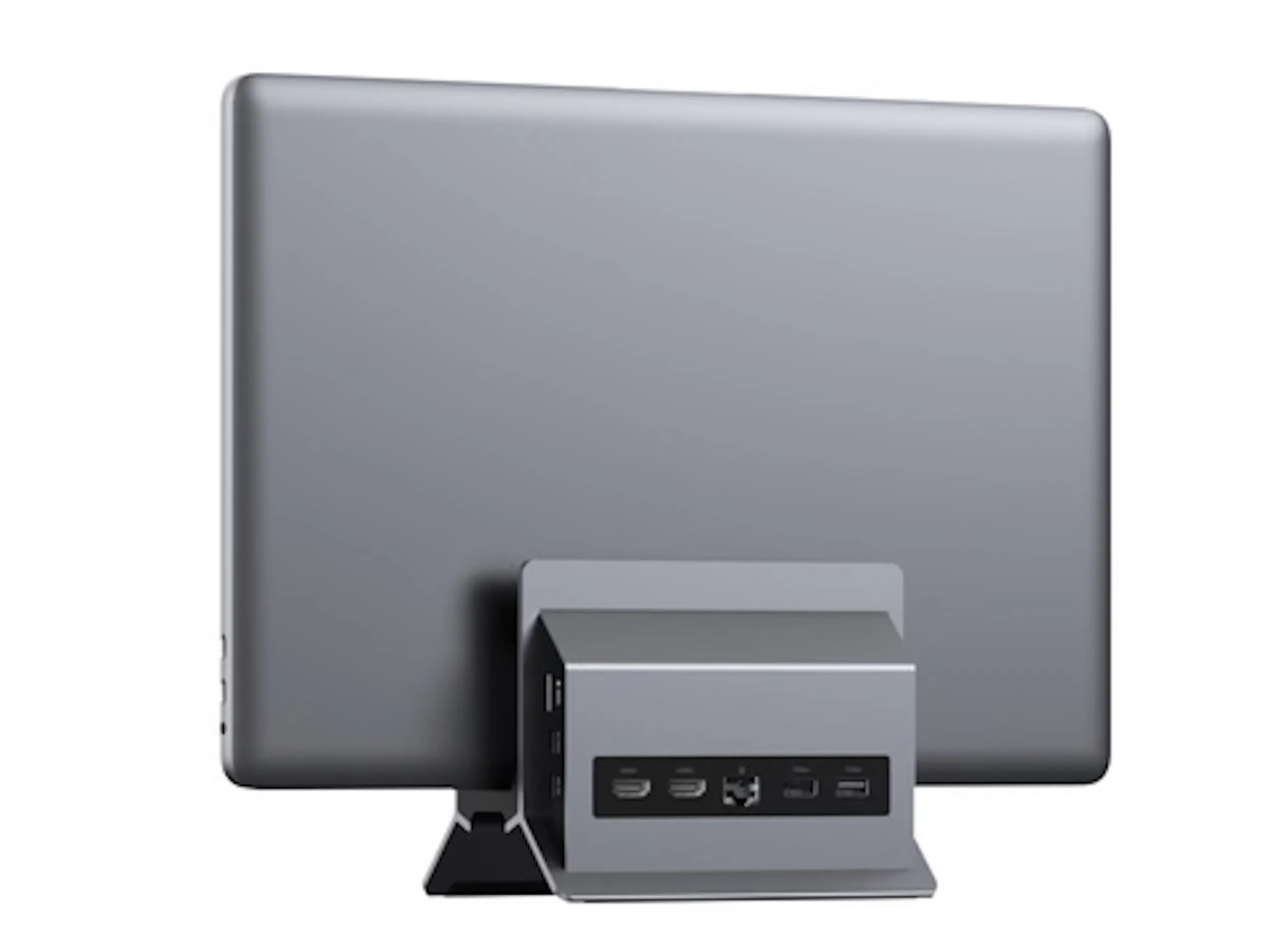 O TobenOne pode muito bem ganhar seu nome como fabricante de soluções de acoplamento e agora está desenvolvendo um novo dispositivo para esse fim. O TobenOne 10-in-1 Adaptive Vertical USB C Docking Station é um dispositivo cujo nome descritivo, por si só, promete muito. Assim, há várias portas disponíveis e o notebook foi projetado para ser armazenado na estação quando não estiver em uso. Embora isso signifique que o notebook, ou seja, a tela e o teclado, não possa mais ser usado, ele certamente libera muito espaço na mesa. É claro que só faz sentido comprar a docking station 10 em 1 Adaptive Vertical USB C se essa configuração for adequada ao seu próprio fluxo de trabalho.