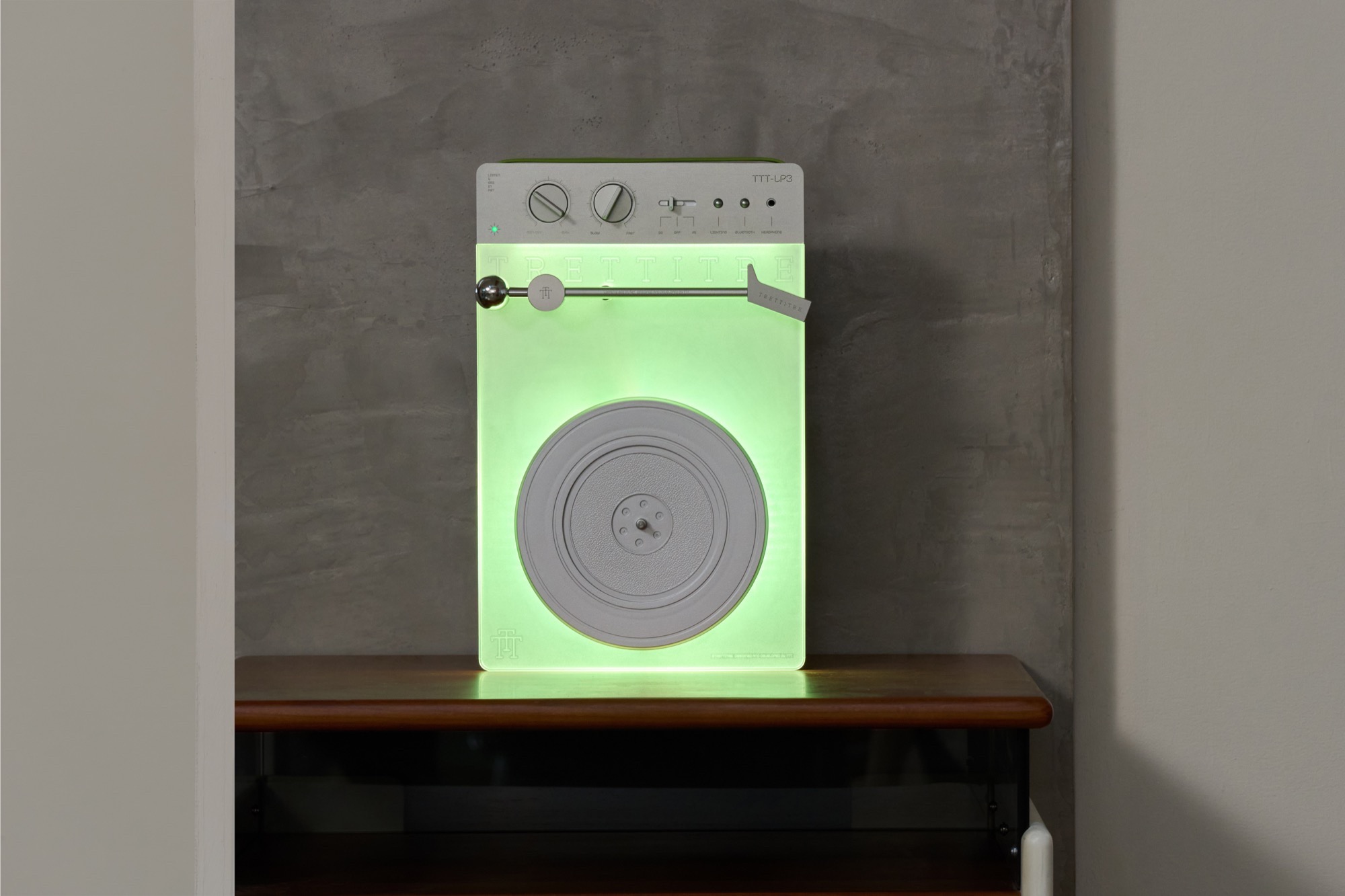 Esse toca-discos Trettitre TTT-LP3 é sem fio e equipado com uma bateria. É possível reproduzir discos tanto verticalmente no suporte de parede quanto horizontalmente em uma mesa. O som pode ser transmitido sem fio via Bluetooth 5.3 para um alto-falante ou fones de ouvido, incluindo suporte para Qualcomm aptX HD. Como alternativa, há um conector AUX de 3,5 mm disponível. O suporte de parede carrega o player e a bateria integrada tem uma duração de até seis horas.