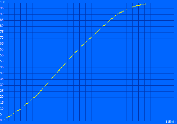 O consumo de energia atinge um máximo de 65,2 W, um pouco mais do que o carregador de 65 W pode fornecer. Como o consumo de energia cai rapidamente, o dispositivo não corre o risco de perder carga durante o uso.