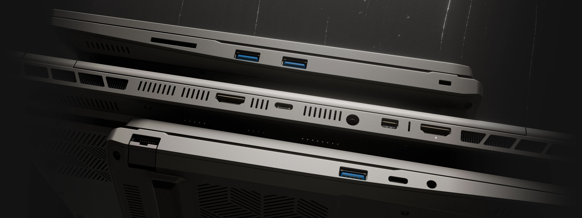 Há também um punhado de portas de conectividade. Para ser mais preciso, a configuração de portas do laptop é a seguinte: