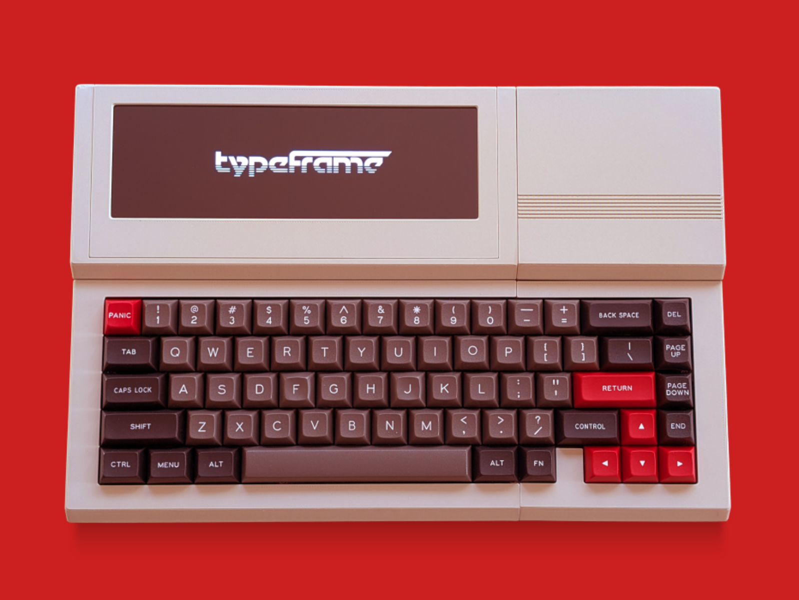Chamado de Typeframe PX-88, o projeto utiliza um Raspberry Pi Modelo 4B e seu chipset Broadcom BCM2711 em seu núcleo. Além disso, o dispositivo apresenta uma tela sensível ao toque IPS de 7,9 polegadas obtida da Wavesharecom resolução de 1.280 x 400 pixels e sem uma carcaça flip-up. Além disso, o Typeframe PX-88 contém um teclado mecânico personalizado de 65%, construído com base no PCB MK Point64.