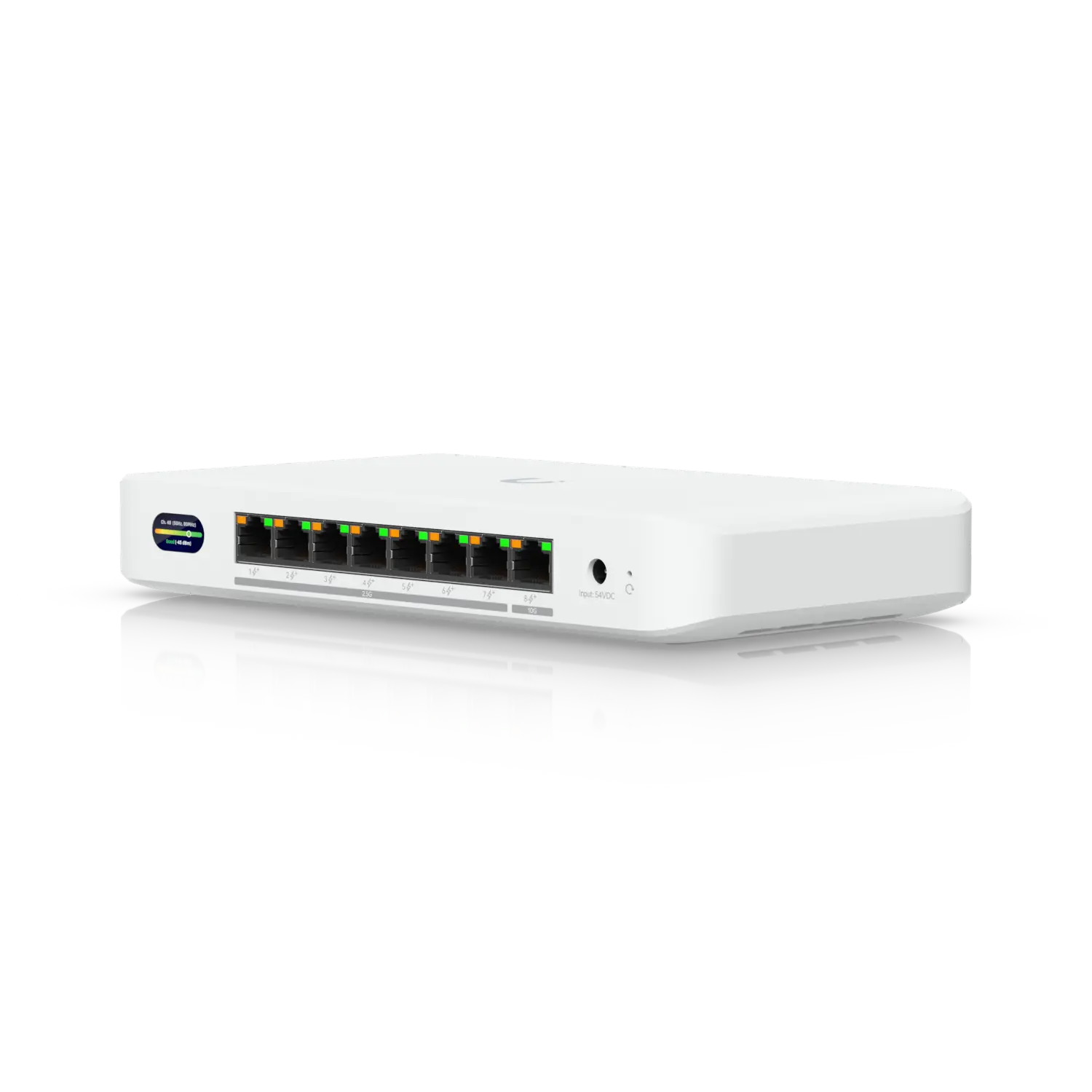 O próprio switch precisa de 25 watts de energia, mas também fornece 185 watts aos dispositivos conectados. Esses dispositivos podem ser conectados a oito portas RJ45. O PoE+ (também conhecido como IEEE 802.3at) com até 30 watts também está disponível. Deve-se observar que a Ubiquiti inclui apenas uma fonte de alimentação de 60 watts com o switch, o que reduz seu orçamento de energia para apenas 35 watts. Os usuários que precisam de mais do que isso devem solicitar a fonte de alimentação opcional de 210 watts.
