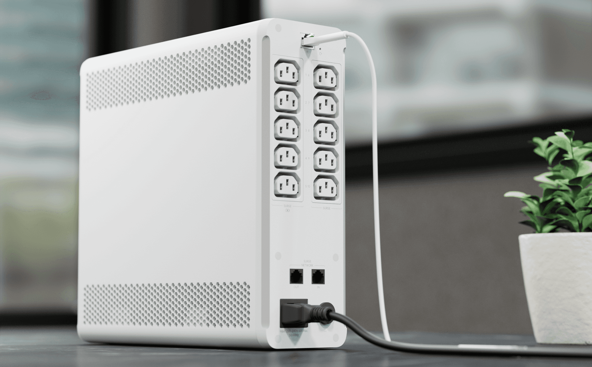 O Unifi UPS Tower foi projetado para ser colocado em desktops. Além de uma porta de rede para integração Unifi e proteção contra surtos para conexões de rede via GbE, a torre oferece um total de dez portas C13 para plugues C14. Todas as portas são protegidas contra surtos e cinco delas são apoiadas adicionalmente pela bateria interna para uma fonte de alimentação contínua.