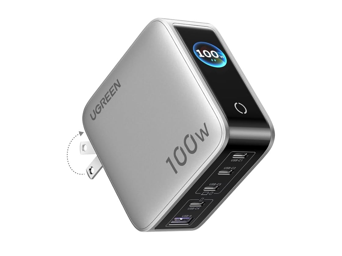 Ugreen lança novo carregador compacto de 100W GaN com 5 portas e tela inteligente