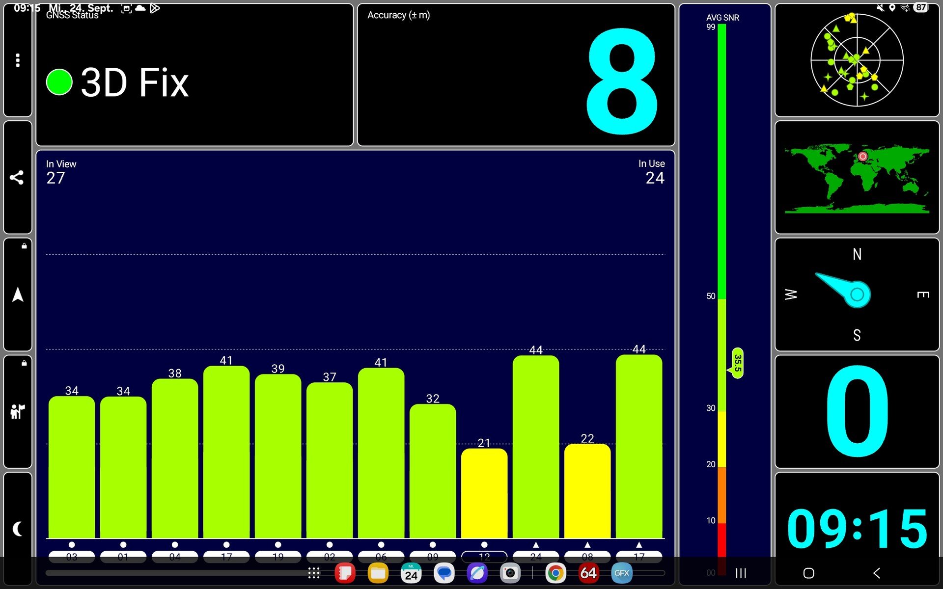 Independentemente de o senhor escolher a versão Wi-Fi ou 5G, um módulo GNSS para posicionamento está sempre disponível. No entanto, nossa amostra de análise não tem um modem sem fio, nem a capacidade de localização via A-GPS. Caso contrário, o tablet da Samsung conta com os sistemas de satélite de banda única mais comuns.