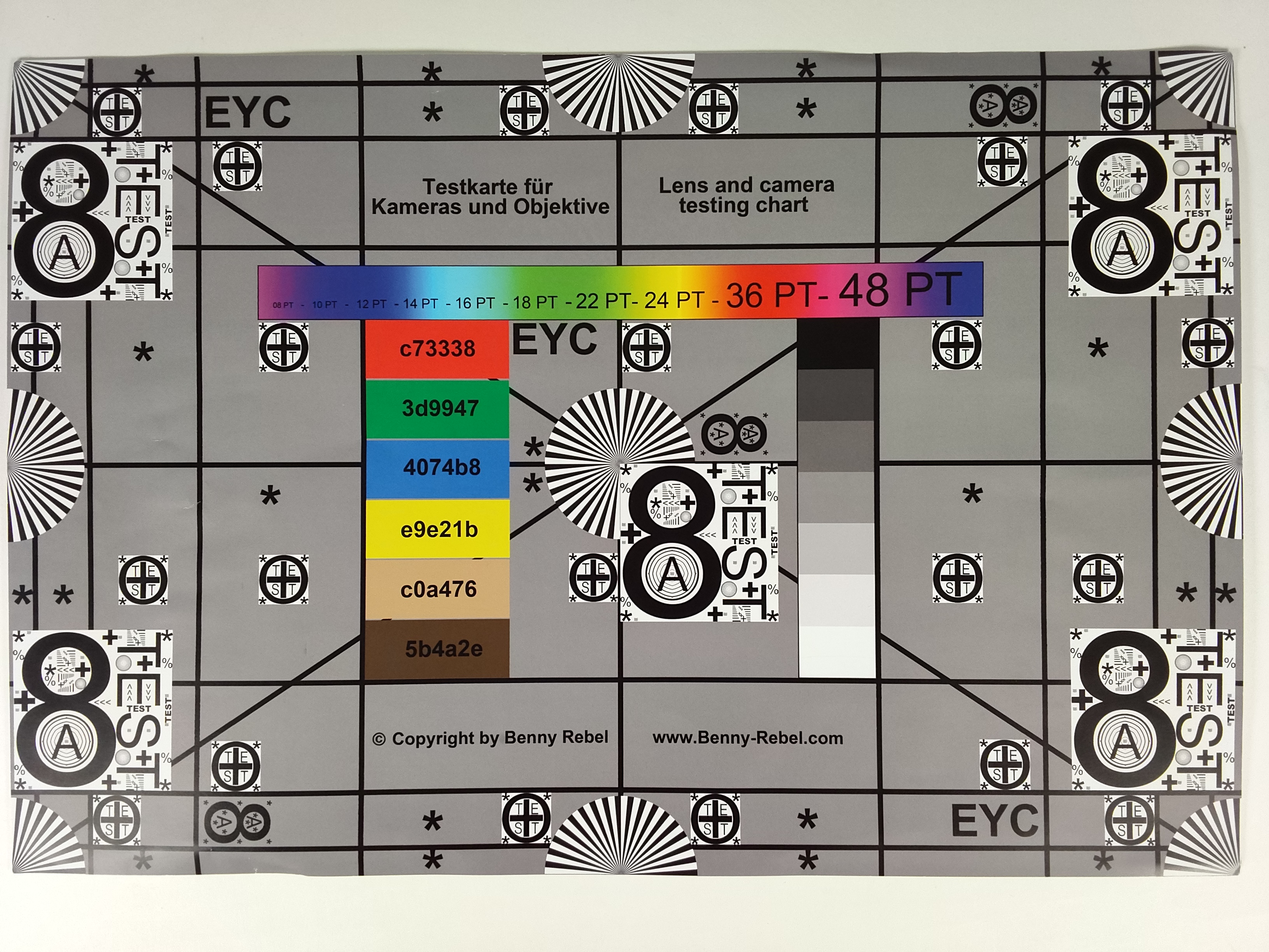 Daylight imageDaylight image5x zoomLow light imageSob condições de iluminação controladas, a câmera principal demonstrou sua capacidade de reproduzir cores com precisão. Com o brilho ideal, ela também produziu uma imagem nítida do gráfico de teste. No entanto, a dependência da câmera de boas condições de iluminação rapidamente se tornou aparente em nosso segundo cenário de teste com um nível de brilho de 1 lux. A imagem resultante do gráfico de teste ficou praticamente irreconhecível.