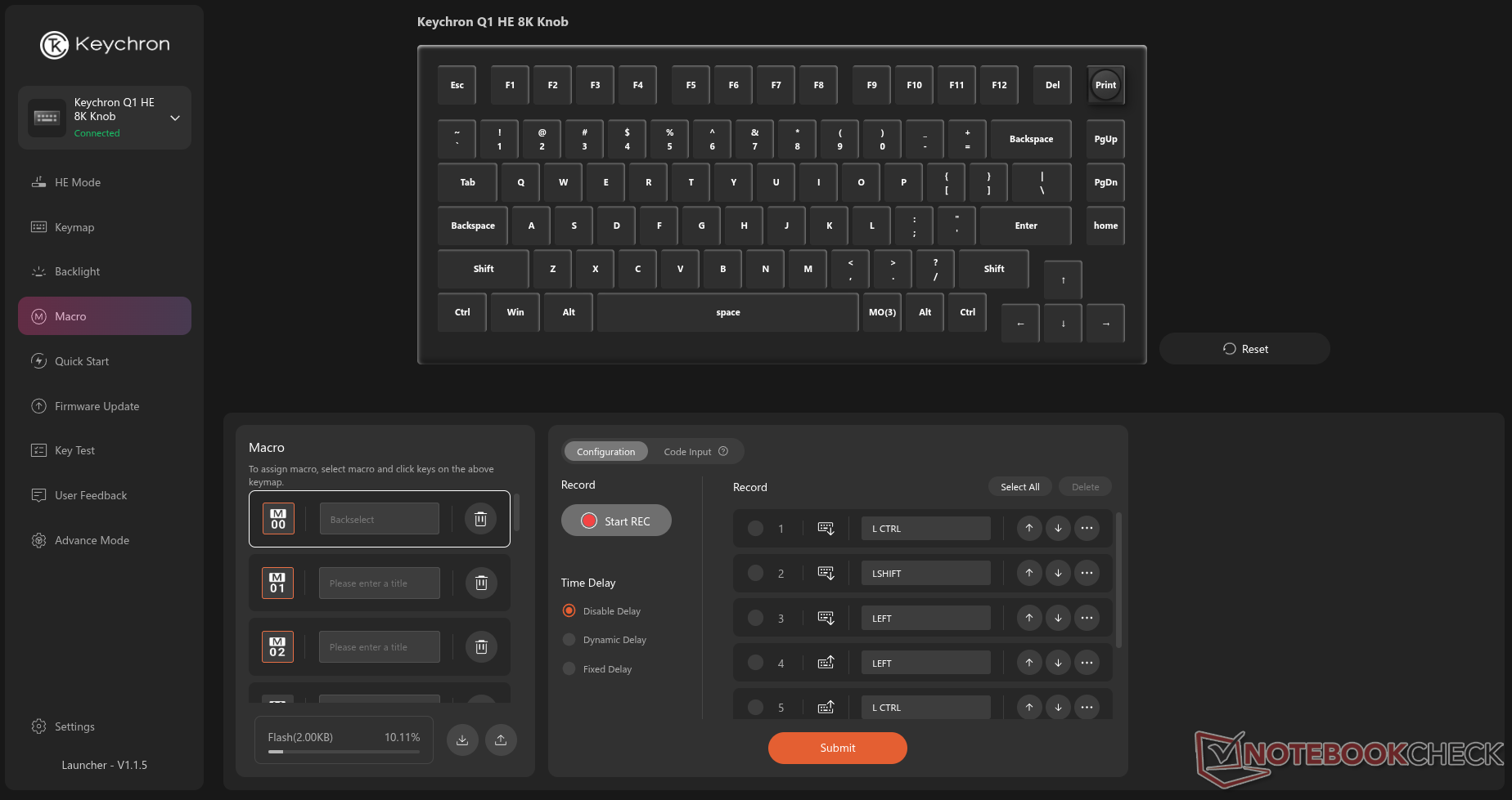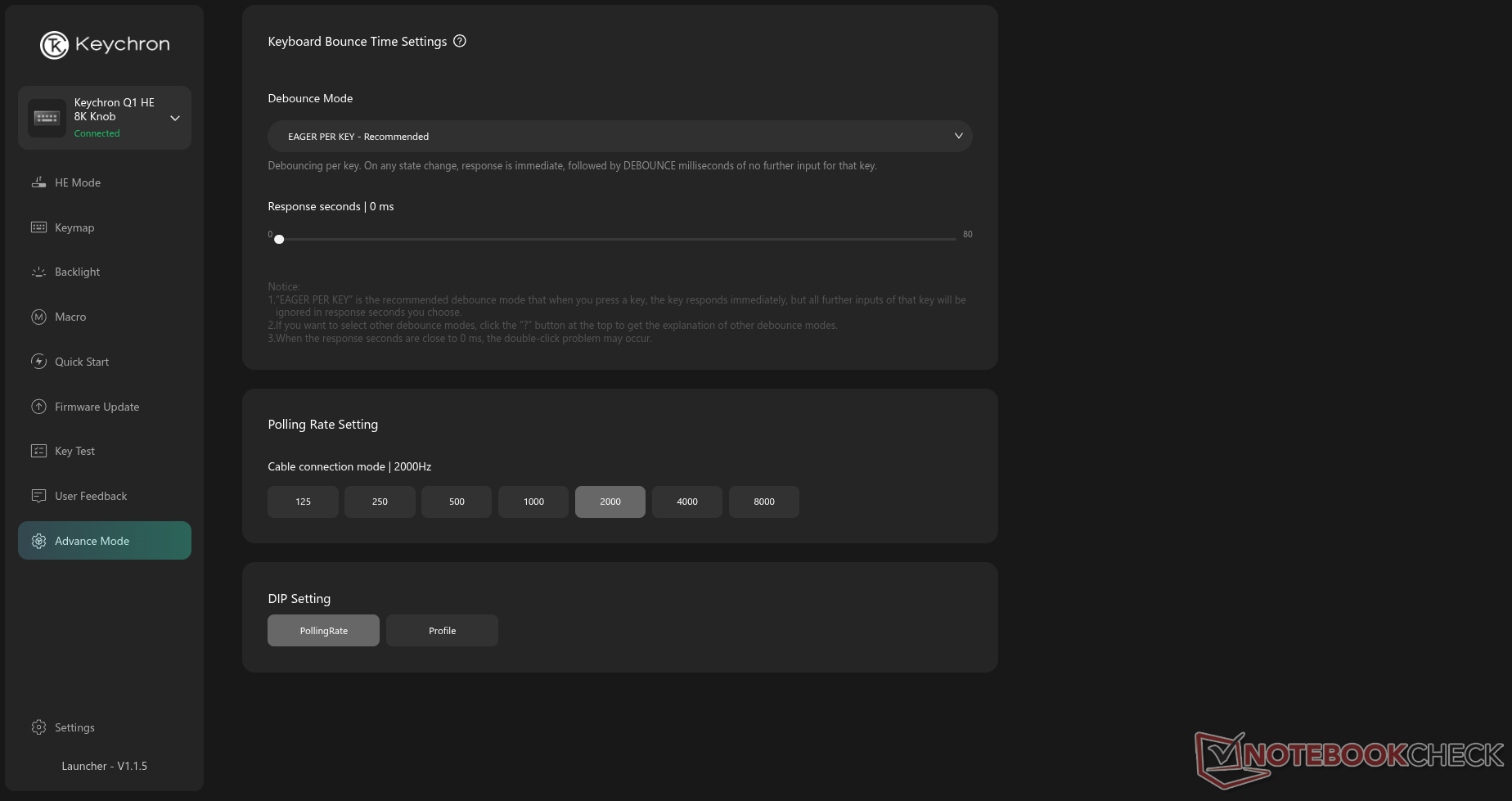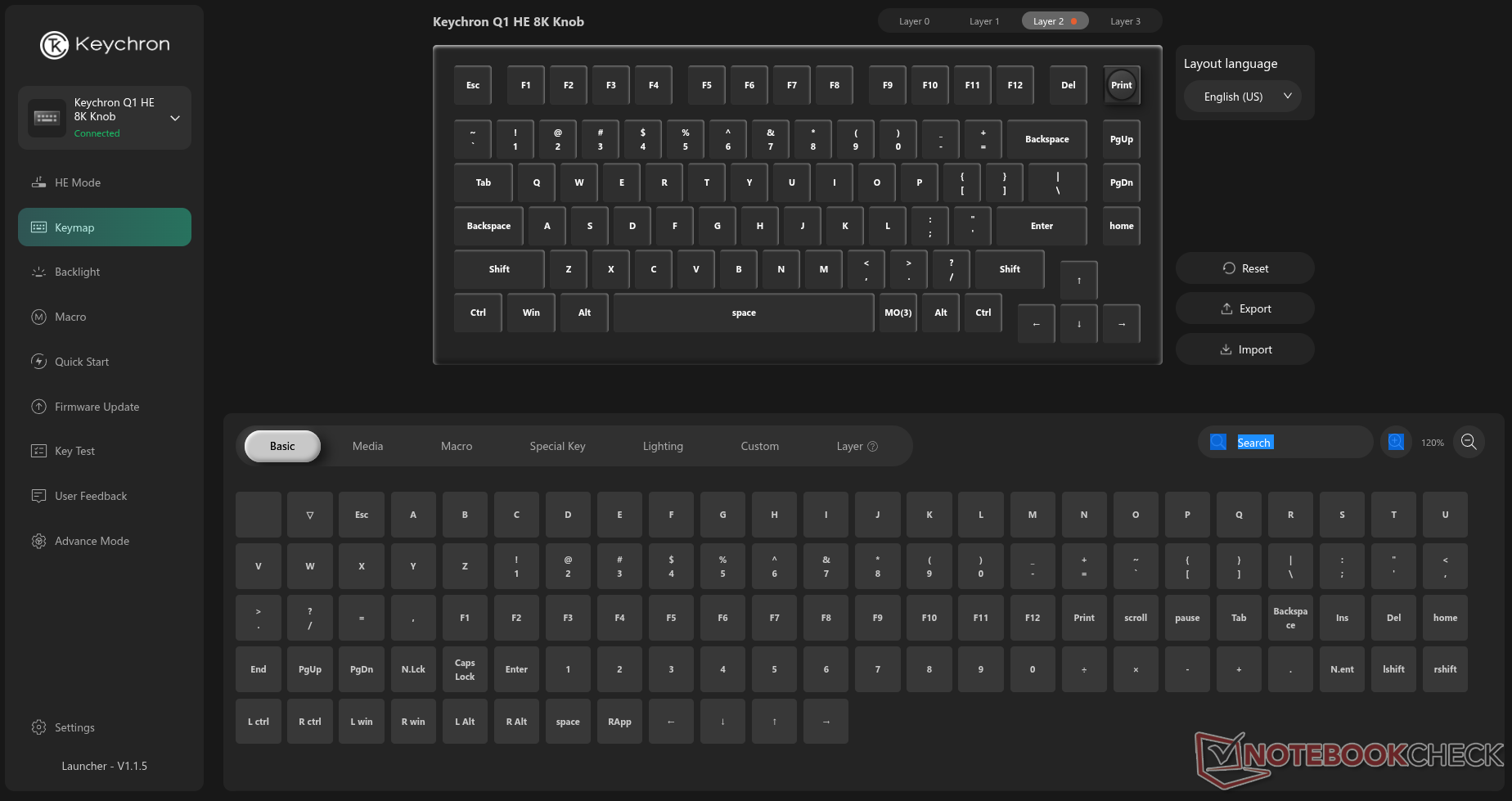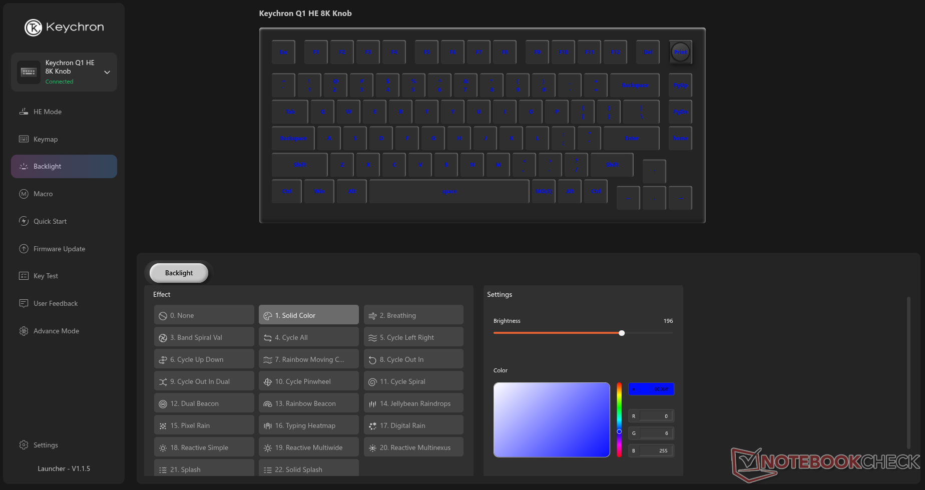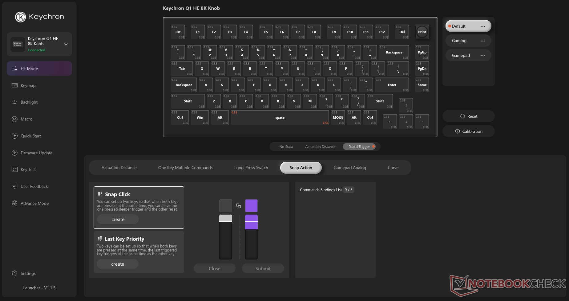 O Keychron Launcher, o pacote de software usado para personalizar os teclados Keychron, também foi atualizado bem a tempo para o lançamento do Q1 HE 8K, oferecendo uma interface de usuário mais limpa para os vários recursos de jogos com efeito Hall oferecidos. A Keychron também atualizou a memória onboard do Q1 HE 8K para 1 MB, o que significa que ele pode armazenar significativamente mais macros e opções de personalização.