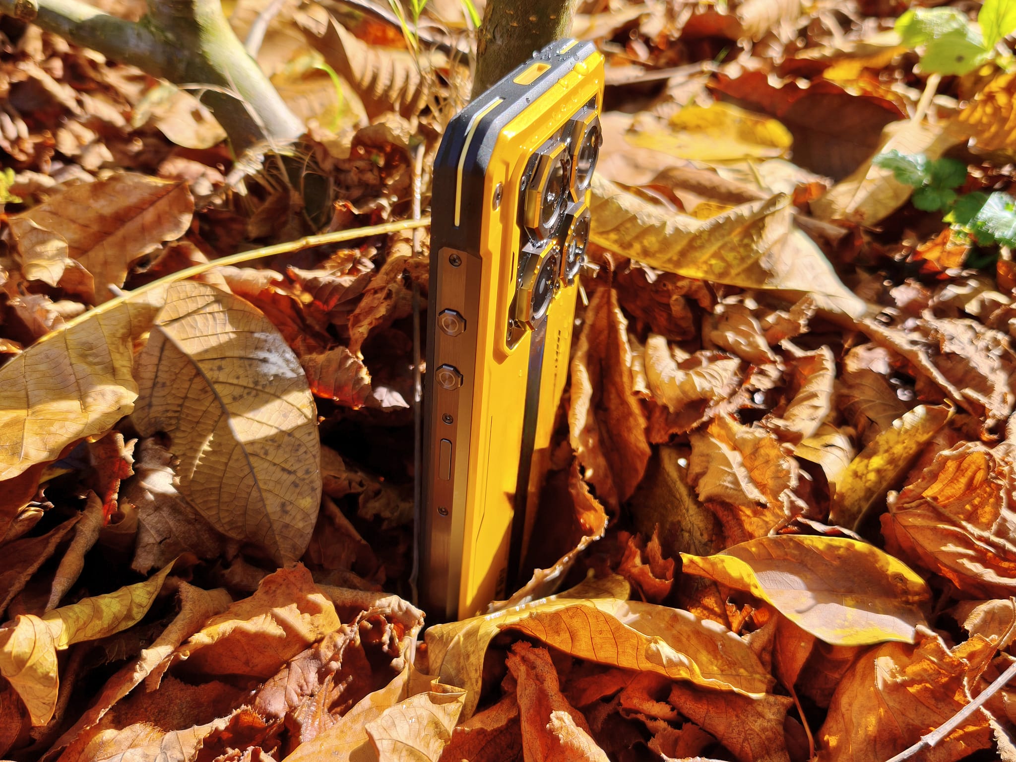 Com 360 gramas, o telefone não é leve, mas, com 7,2 polegadas, também oferece uma tela enorme. Ele é protegido contra poeira e água de acordo com a norma IP68/69K e, portanto, também pode ser levado para mergulhos rasos em água doce.