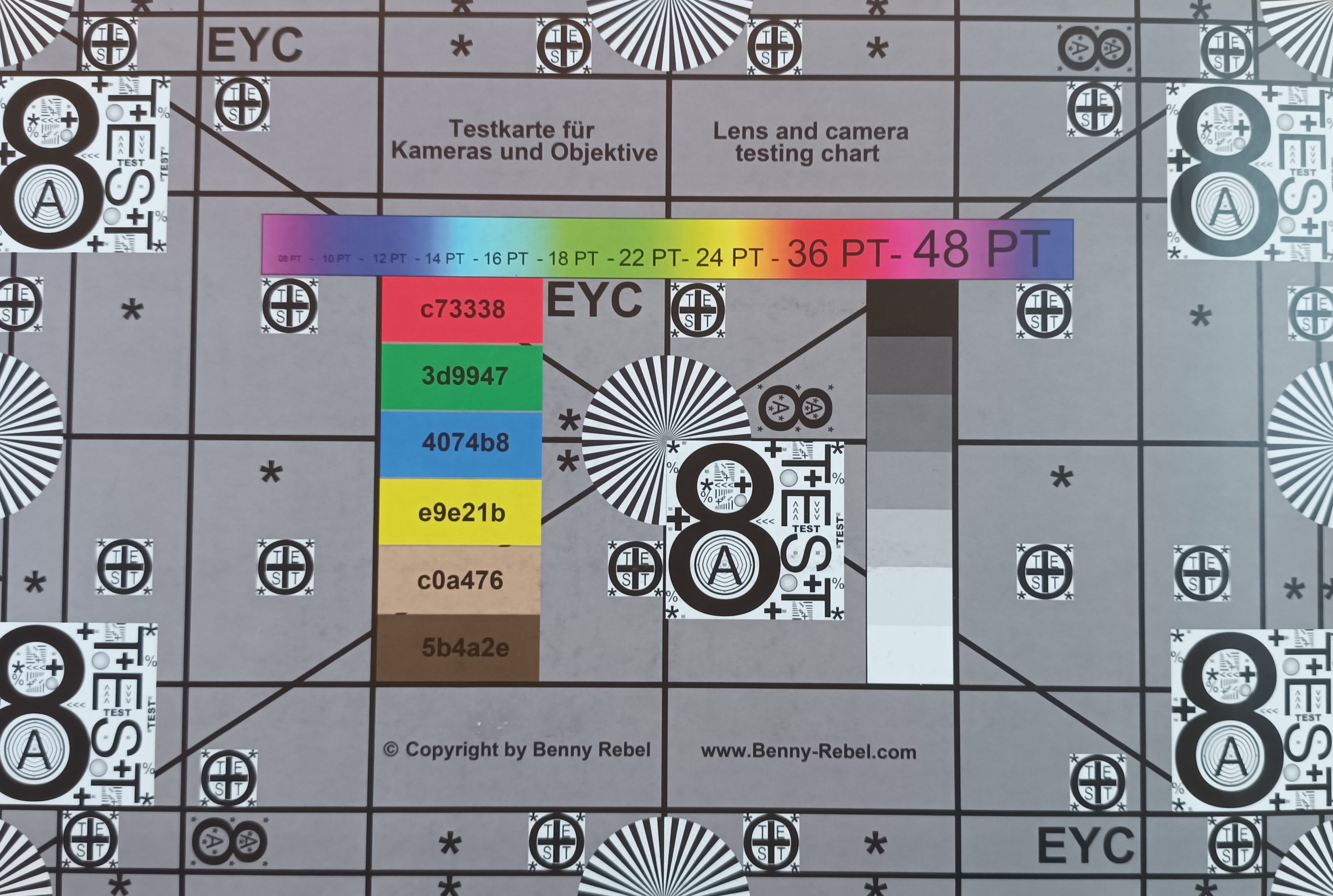 | Colorchecker dE 2000 * | 5.25 | 5.85 -11% | 8.39 -60% | 1.95 63% |