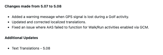 A versão 5.08 do software traz três mudanças para o smartwatch Lily 2 Active. Em primeiro lugar, há uma nova notificação enviada aos usuários quando o sinal de GPS é perdido, embora isso só ocorra durante uma atividade de golfe. A Garmin também resolveu um problema relacionado ao recurso Auto Activity Start do wearable. Essa ferramenta permite que atividades cronometradas sejam criadas e salvas automaticamente. Um bug que significava que não funcionaria de forma confiável para exercícios de caminhada e corrida quando ativado por meio do aplicativo Garmin Connect Mobile foi resolvido.