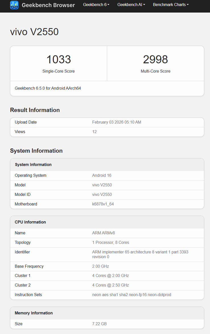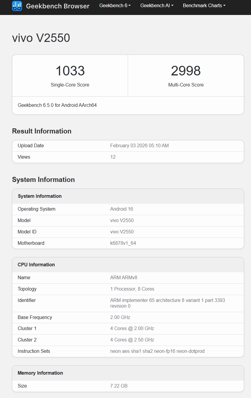 Um vazamento recente do Geekbench corrobora a afirmação da PassionateGeekz, embora ainda não esteja claro como o Dimensity 7360 Turbo difere do Dimensity 7360 normal. Independentemente disso, o V70 FE também conta com uma bateria de 7.000 mAh que suporta carregamento com fio de 90 W e uma tela AMOLED de 6,83 polegadas com resolução de 1,5K e taxa de atualização de 120 Hz.