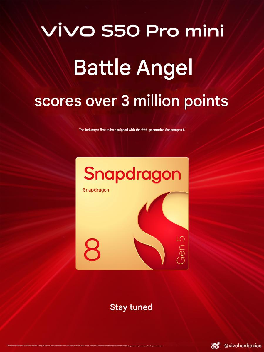 Aparentemente, o Vivo S50 Pro mini atinge cerca de 3 milhões de pontos no AnTuTu v10 "em condições normais de temperatura ambiente também", com Han Bo Xiao acrescentando que essa pontuação supera facilmente "os modelos subflagship anteriores em mais de um milhão de pontos". Atualmente, espera-se que o S50 Pro mini combine uma tela de 6,3 polegadas com câmeras primária de 50 MP e periscópio de 50 MP, o que o faria superar o popular Galaxy S25 da Samsung no que diz respeito ao hardware da câmera (atualmente, US$ 674,99 na Amazon).