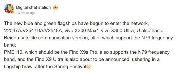 No momento, o autor do vazamento ainda não forneceu nenhuma evidência de que isso tenha ocorrido. O número do modelo V2548A deve aparecer em vazamentos separados no próximo mês, se o X300 Max existir. Com base no post do Weibo abaixo, parece que a Vivo poderá apresentar o X300 Max no próximo mês, juntamente com o X300 Ultra (V2547A).