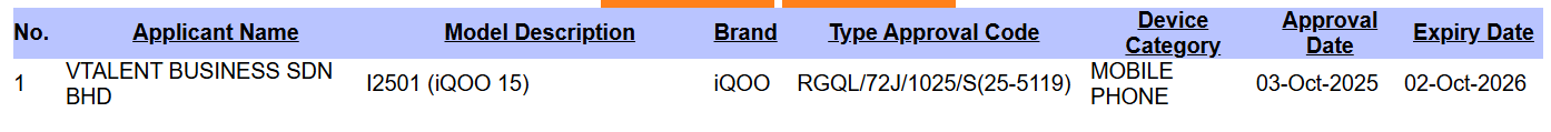 O Vivo X300 Pro com o número de modelo "V2514" recebeu a certificação SIRIM na Malásia. Além disso, o iQoo 15 foi certificado com o número de modelo "I2501" As certificações SIRIM não revelam nenhuma especificações dos dispositivos. No entanto, isso pode ser visto como uma indicação de um lançamento global iminente.
