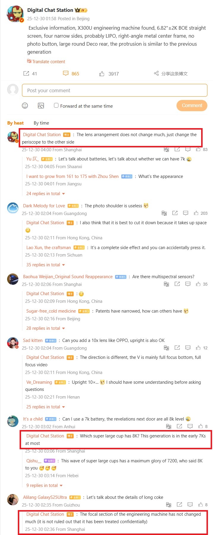 Além dessa boa notícia dos bancos de dados da EEC, o altamente confiável vazador Digital Chat Station também forneceu algumas especificações adicionais sobre o Vivo X300 Ultra. Como já relatamos anteriormenteele apresenta uma tela OLED plana de 6,82 polegadas da BOE com molduras finas e bordas de estrutura metálica plana, mas aparentemente não possui mais um botão dedicado para o obturador da câmera. Para alguns usuários, isso certamente seria um grande downgrade em comparação com o Vivo X200 Ultra. A Vivo pode estar seguindo o exemplo da Xiaomi, já que o Xiaomi 17 Ultra Leica Edition não tem um botão do obturador, pois a Xiaomi quer vender acessórios opcionais.