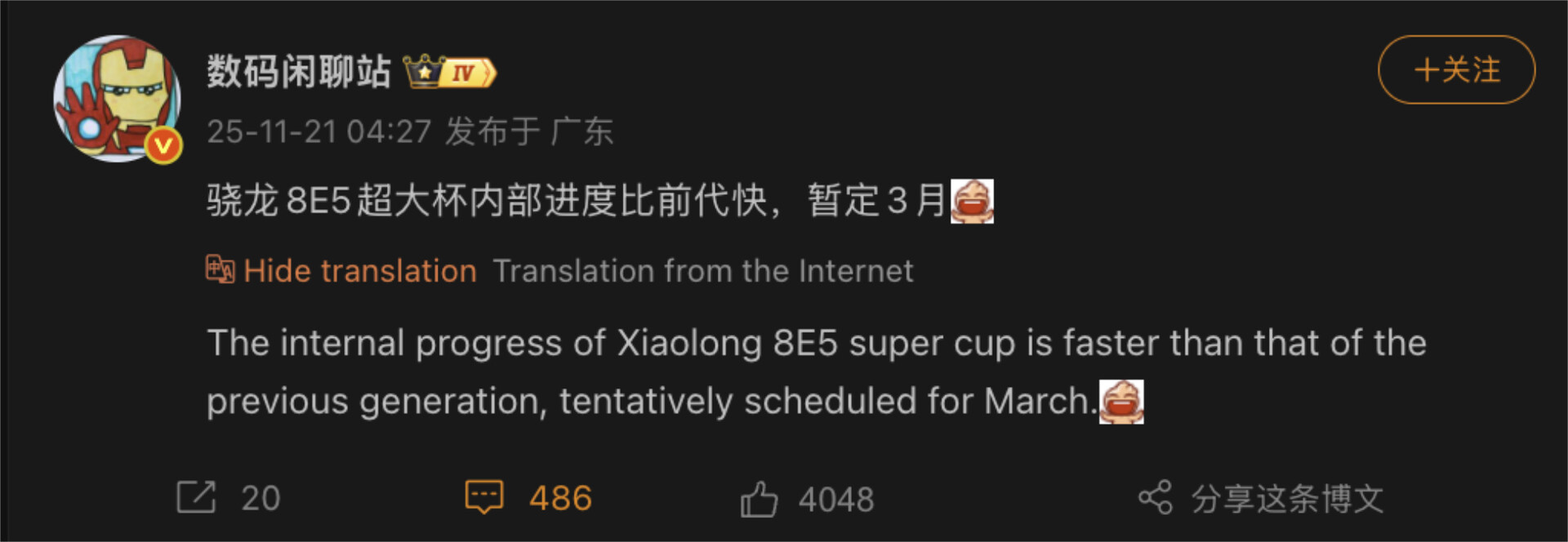 Escrevendo no Weibo, o vazador afirma que o desenvolvimento interno do próximo smartphone Ultra da Vivo está "progredindo mais rápido que seu antecessor". Equipado com um Snapdragon 8 Elite Gen 5 o X300 Ultra está aparentemente "programado para março", ou apenas 11 meses após o X200 Ultra ter sido lançado na China.