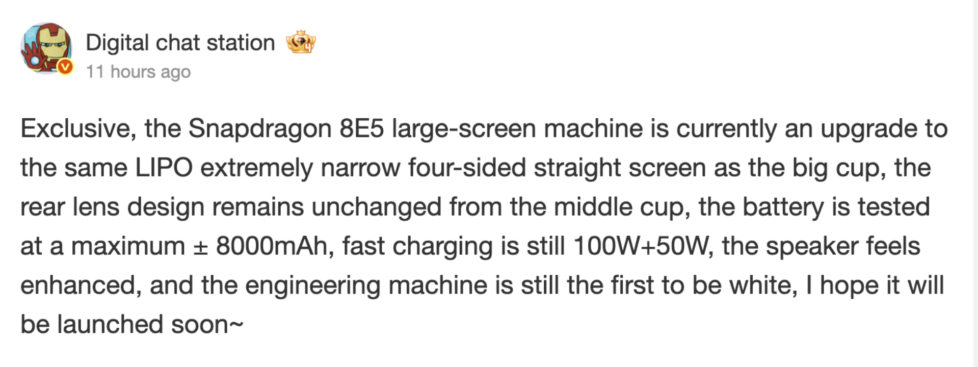 Da mesma forma, o dispositivo manteria o Snapdragon 8 Elite Gen 5 da Qualcomm. Além disso, a Digital Chat Station acredita que o Xiaomi 17 Max usará a mesma tela AMOLED de 6,9 polegadas do Xiaomi 17 Pro Max e Xiaomi 17 Ultra. Descrito como uma tela ultra-estreita, o painel LTPO também oferece 2.608 x 1.200 pixels com 3.500 nits de brilho máximo, uma taxa de atualização de 120 Hz e 2.160 Hz PWM.