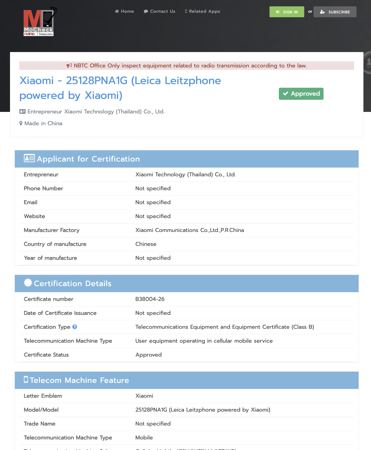 Agora, Evan Blass descobriu referências a três carros-chefe globais da Xiaomi na Comissão Nacional de Radiodifusão e Telecomunicações (NBTC) da Tailândia. Sem surpresa, o Xiaomi 17 Ultra apareceu, novamente com seu número de modelo 2512BPNDAG. Além disso, a Xiaomi certificou o Xiaomi 17 com a NBTC como uma alternativa de carro-chefe menor, assim como fez no ano passado com o Xiaomi 15 Ultra e o Xiaomi 15 (atualmente, US$ 837 na Amazon).