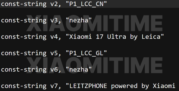 Essa suposição é baseada em marcas d'água vazadas, que são comumente usadas na China para mostrar com qual câmera uma foto foi tirada. Elas geralmente também mostram parâmetros como abertura, ISO e velocidade do obturador, bem como a data em que a foto foi tirada. Essas marcas d'água podem ser ativadas opcionalmente para cada foto e foram descobertas pelo site XiaomiTime no código do HyperOS, conforme visto nas capturas de tela abaixo. O que é particularmente interessante é que o Xiaomi 17 Ultra Special Edition pode ter nomes diferentes, dependendo da região.