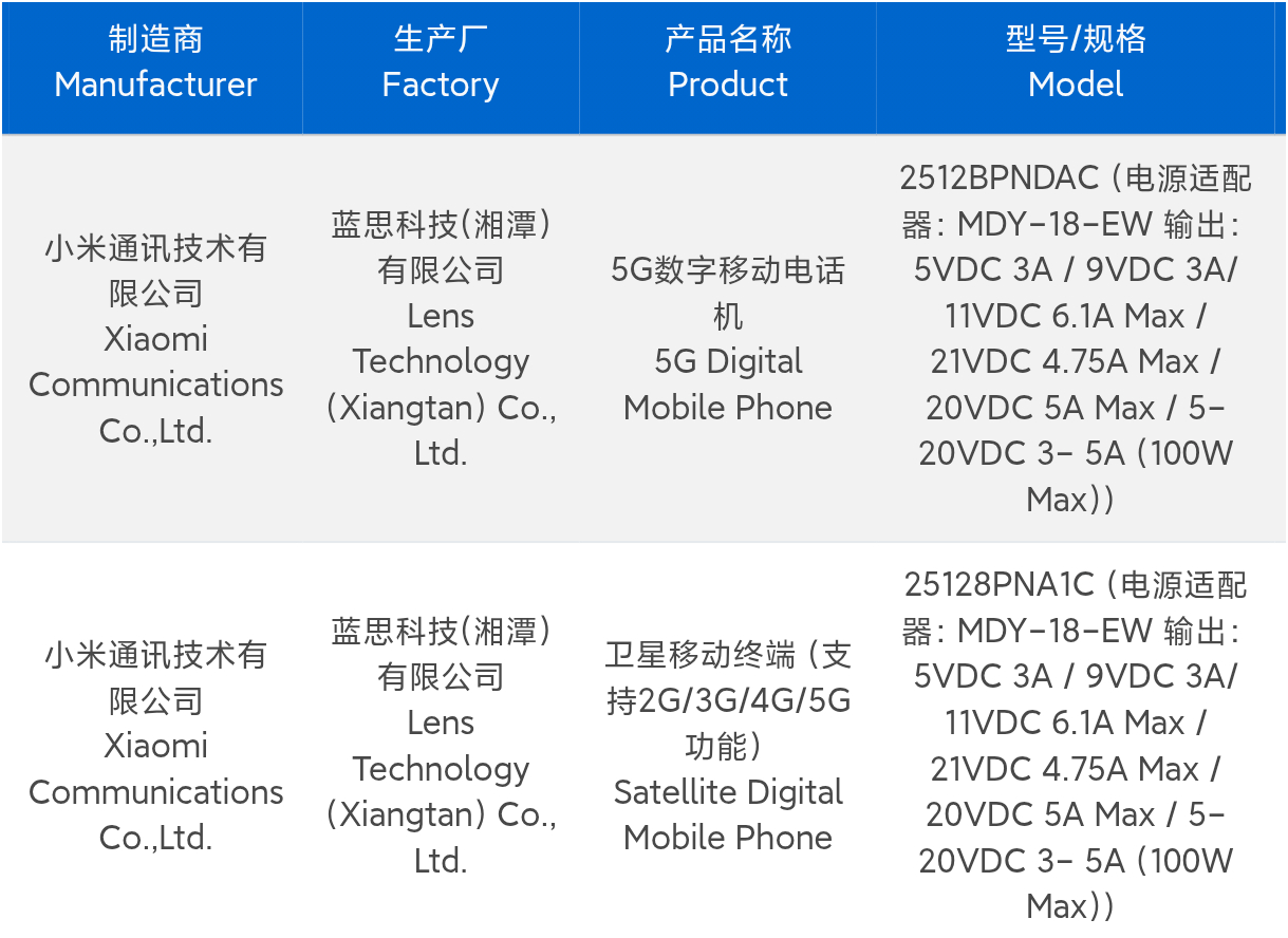 O sucessor do Xiaomi 15 Ultra foi visto no sistema de certificação 3C da China, com dois modelos distintos listados. As entradas CCC confirmam que ambas as variantes suportam carregamento rápido de 100 watts - semelhante ao Xiaomi 17, Xiaomi 17 Pro e Xiaomi 17 Pro Max. De acordo com a certificação, os modelos 2512BPNDAC e 25128PNA1C diferem apenas em sua conectividade celular: O primeiro suporta exclusivamente redes 5G, enquanto o segundo adiciona conectividade via satélite (pelo menos na China). O prolífico vazador Digital Chat Station afirma que essa variante suporta SMS via satélite Beidou e chamadas via satélite Tiantong