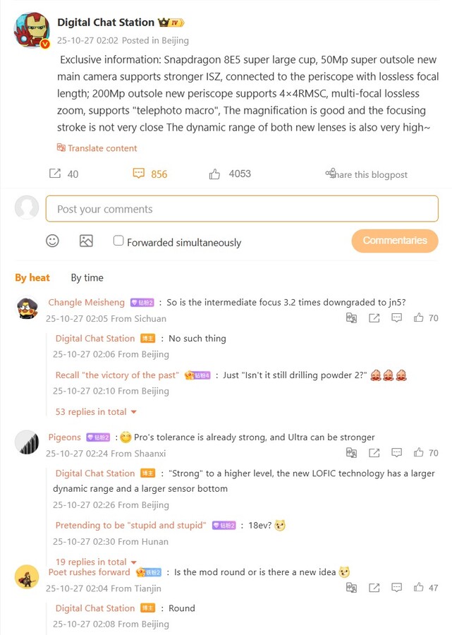 Isso também possibilitará um "zoom mais forte no sensor" a curta distância, o que supostamente fará uma ponte perfeita entre a faixa de distância focal e a teleobjetiva periscópica. Com base em um sensor de 200 MP (provavelmente o ISOCELL HPE da Samsung), isso abrange várias distâncias focais de zoom usando o zoom de corte sem perdas, com a ampliação descrita como boa e a dinâmica de ambos os sensores como muito alta. O suporte a macro telefoto também está incluído, de acordo com o vazador. Assim como no Xiaomi 15 Ultra, o design da câmera Leica é redondo, portanto, um segundo visor como o do Xiaomi 17 Pro é improvável