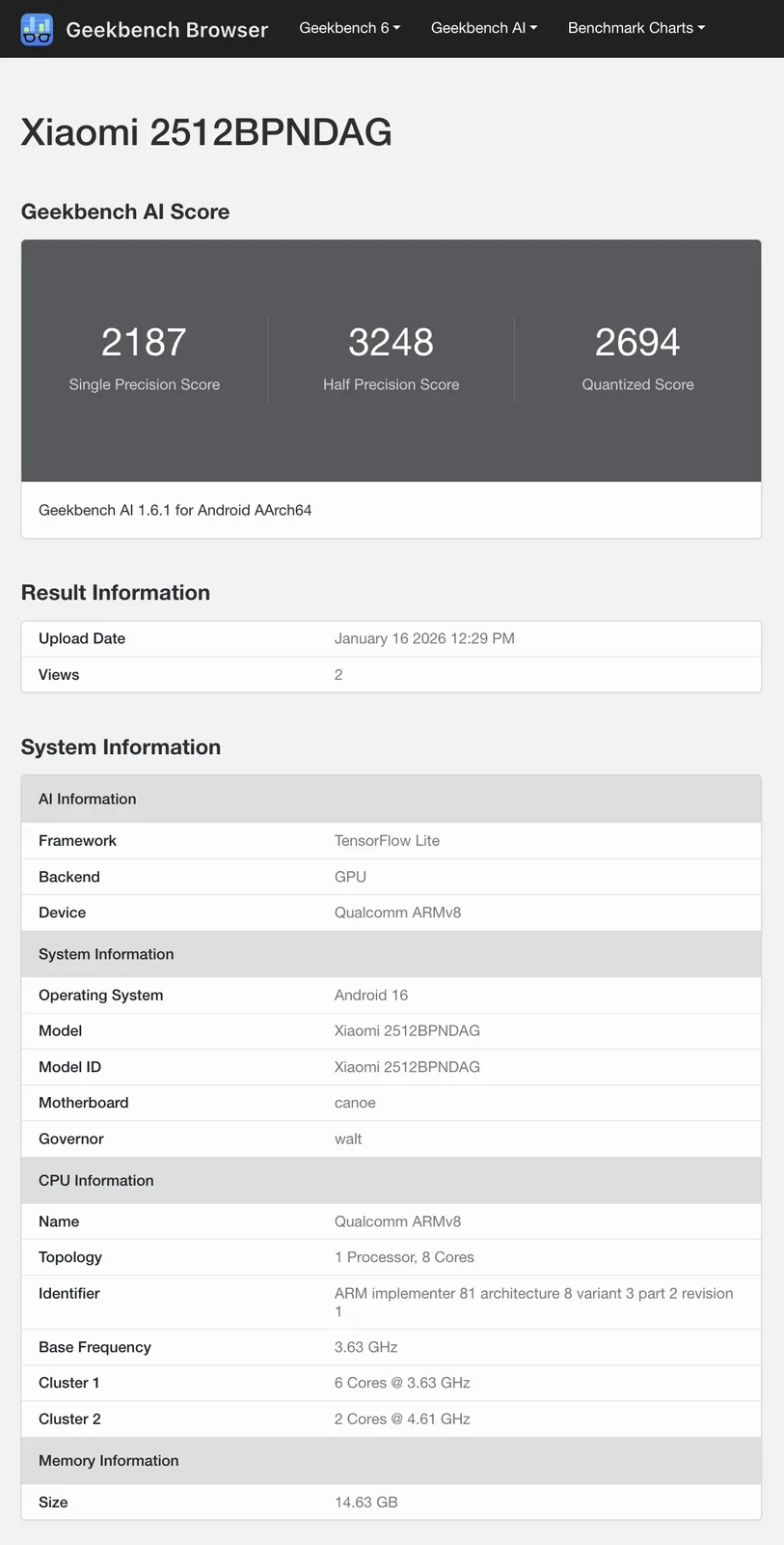 No entanto, a versão global do Xiaomi 17 Ultra apareceu agora no Geekbench. Identificada pelo número de modelo 2512BPNDAG, espera-se que a variante global seja acompanhada apenas pelo Xiaomi 17 fora da China. Sem surpresa, o Xiaomi 17 Ultra mantém um Qualcomm Snapdragon 8 Elite Gen 5 em sua versão global. Além disso, o dispositivo estará disponível fora da China com o Android 16 desde o início, ao contrário do recente Xiaomi 15T Pro (atualmente, US$ 844,50 na Amazon).