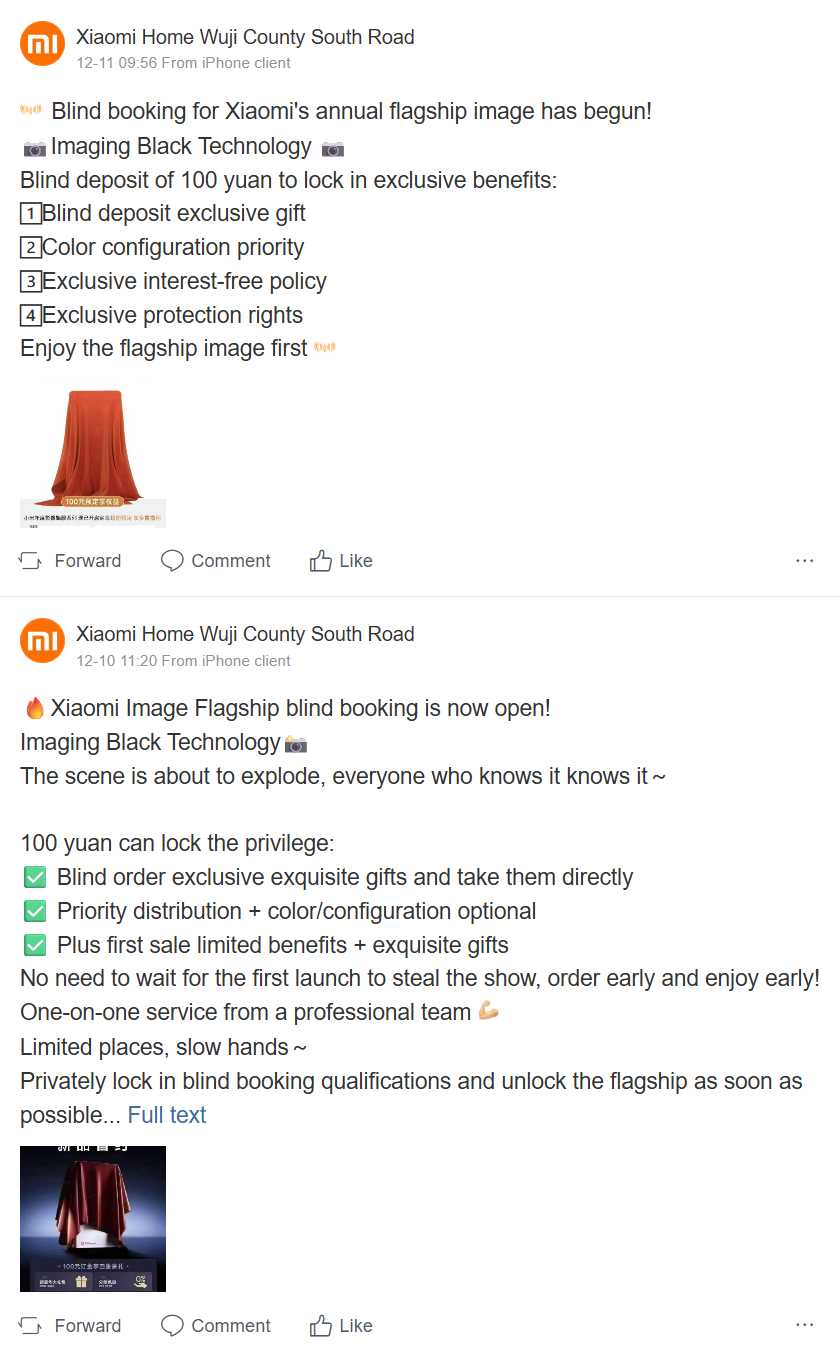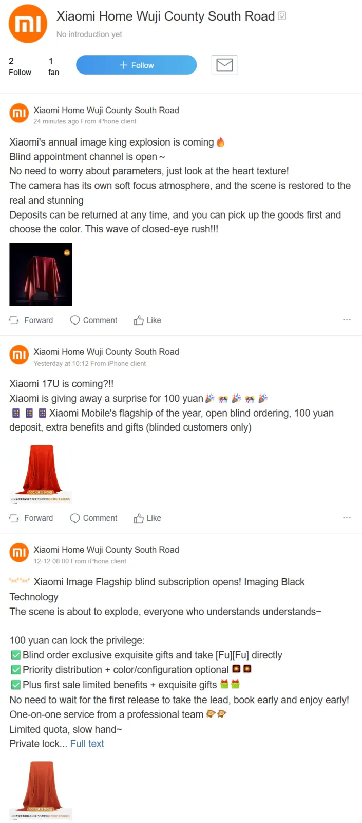 Os fãs chineses de smartphones que quiserem colocar as mãos no que provavelmente será um dos celulares mais interessantes do próximo ano já podem fazer um depósito de 100 yuans (cerca de US$ 14) para reservar o Xiaomi 17 Ultra com antecedência, conforme promovido pela Xiaomi Store no Weibo. Em uma das muitas postagens sobre esse tópico, ela até mesmo se refere explicitamente ao aparelho ainda não lançado, declarando "Xiaomi 17U is coming?!!!", embora ainda seja uma "reserva às cegas" neste momento.