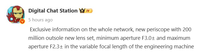 O vazador em questão revelou agora outro detalhe sobre essa possível solução de zoom óptico de 200 MP com óptica Leica: os valores de abertura em ambas as extremidades da faixa de distância focal. De acordo com o vazador, pode-se esperar uma abertura de f/2.3 na distância focal equivalente a 70 mm e f/3.0 a 100 mm, uma característica típica de lentes de zoom mais baratas que permitem a passagem de menos luz à medida que a distância focal aumenta. O texto também sugere que essa pode ser uma lente periscópica interna incorporada ao Xiaomi 17 Ultra, semelhante à do Sony Xperia 1 VII. Essas informações referem-se a um dispositivo de teste atual, portanto, ainda é possível que haja alterações antes do lançamento