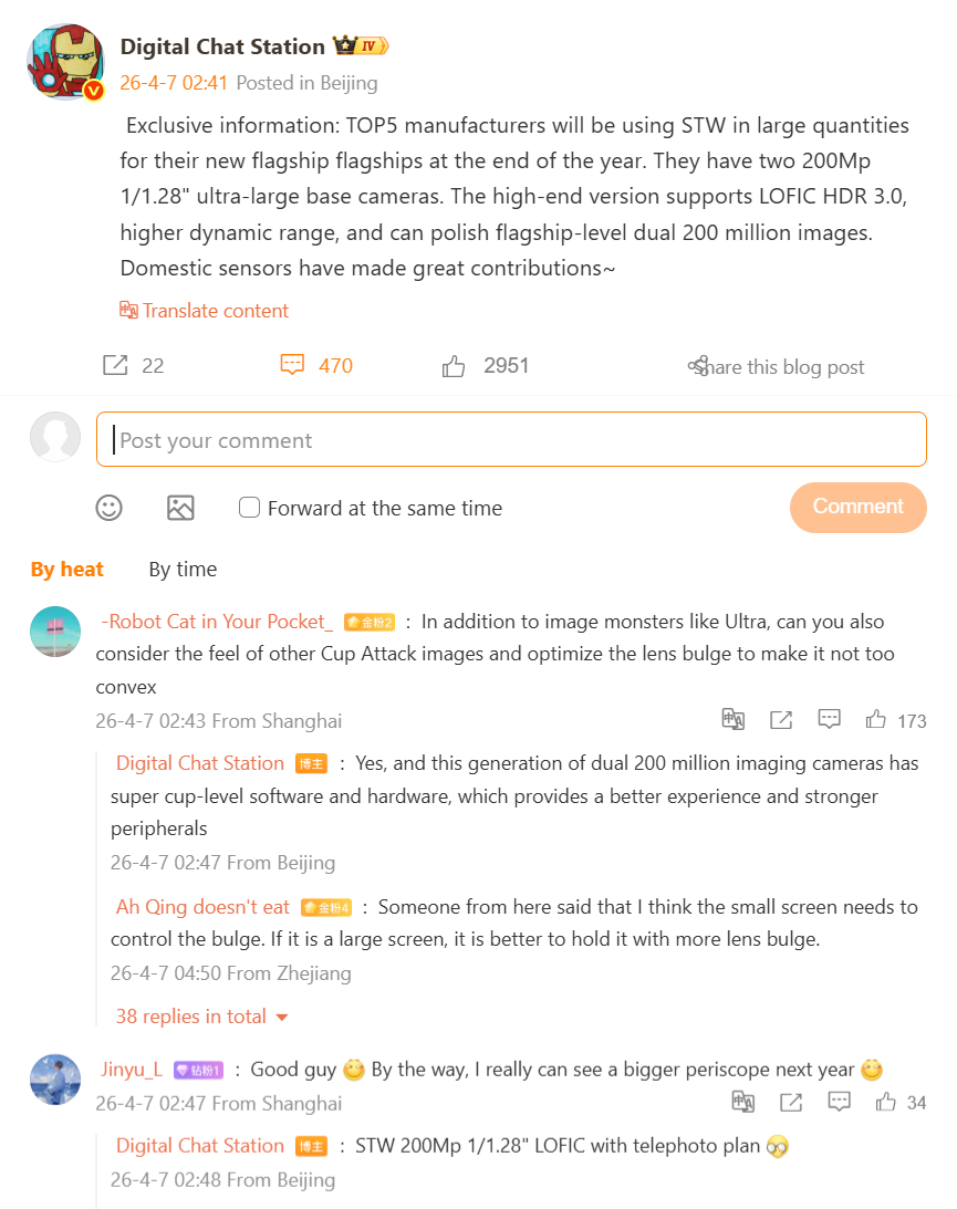 Espera-se que vários deles, aparentemente incluindo a Xiaomi, confiem mais fortemente no final do ano em sistemas de câmera dupla de 200 MP com base em sensores de 1/1,28 polegadas da fabricante chinesa de componentes SmartSens, cuja versão de ponta suportará a terceira geração do LOFIC HDR para uma faixa dinâmica excepcional. A Xiaomi já usa o LOFIC para o sensor de 1 polegada no Xiaomi 17 Ultra e, até o final de 2026, a tecnologia também poderá ser usada para a câmera telefoto em uma nova versão, conforme esclarecido nos comentários no Weibo.