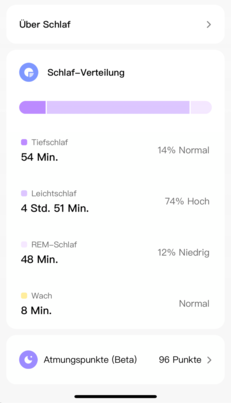 A maioria dos dados de atividade e saúde também pode ser lida no pulso. Novo em comparação com o predecessor Mi Smart Band 5 é a medição da saturação de oxigênio no sangue. Entretanto, ela só é feita manualmente.