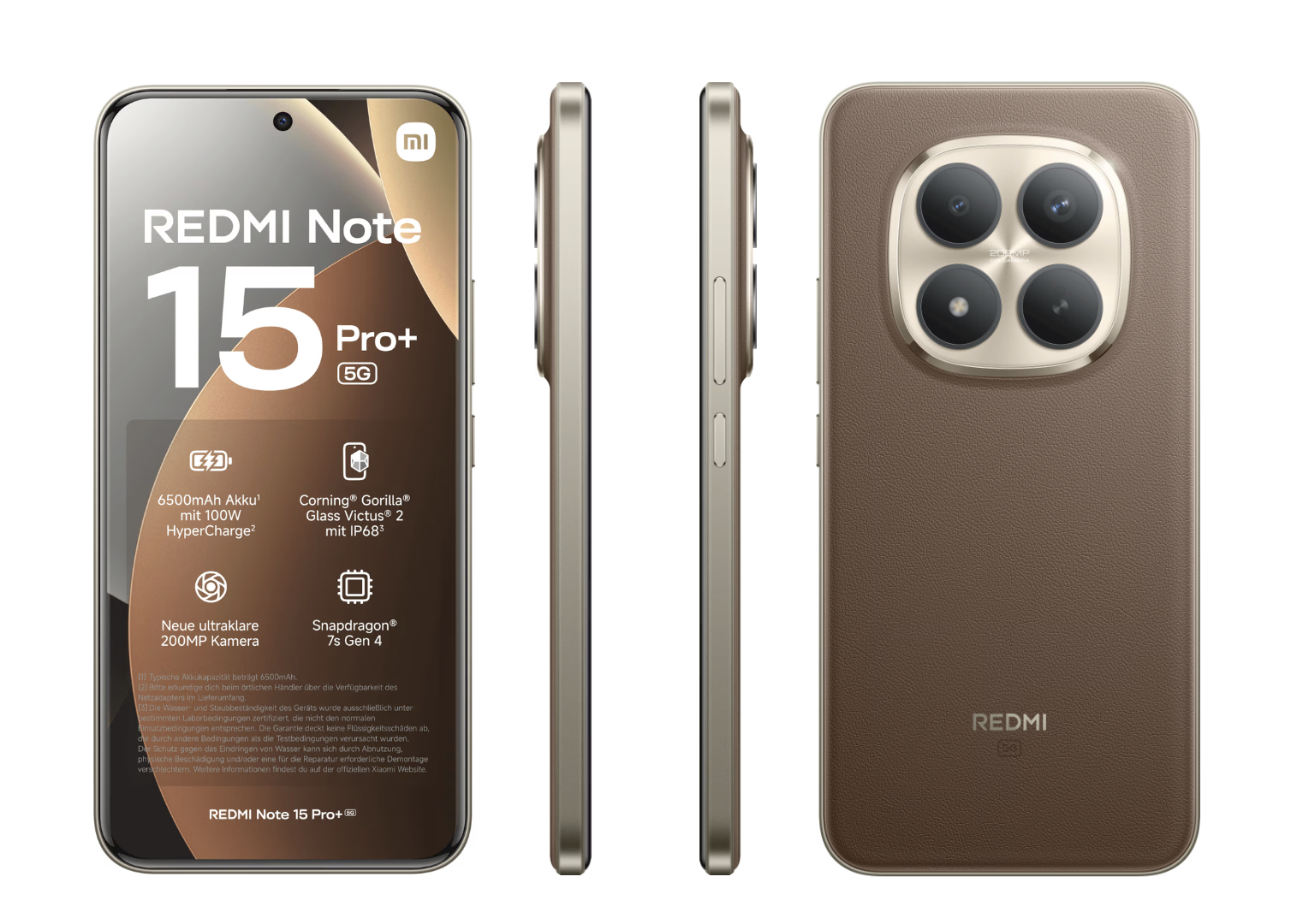 No entanto, as câmeras primária de 200 MP, ultra grande angular de 8 MP e auxiliar de 2 MP do Redmi Note 14 Pro Plus retornam, embora com a câmera frontal de 32 MP do Redmi Note 15 Pro Plus vendido na China. Além disso, o Redmi Note 15 Pro Plus apresenta uma bateria de 6.500 mAh com carregamento com fio de 100 W em todo o mundo, uma redução de 500 mAh em relação ao seu equivalente chinês, mas um aumento de 1.390 mAh em relação ao Redmi Note 14 Pro Plus.