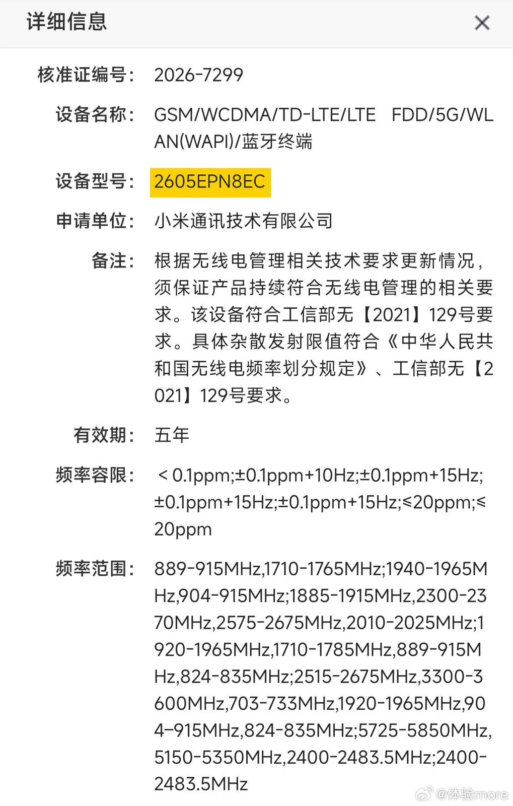 Especificamente, várias fontes observaram que a SRRC certificou o misterioso "2605EPN8EC" para venda na China. Apenas pelo número do modelo, podemos inferir que a Xiaomi pretende oferecer o dispositivo em seu mercado doméstico em maio de 2026. No entanto, ainda não se sabe se isso vai acontecer.